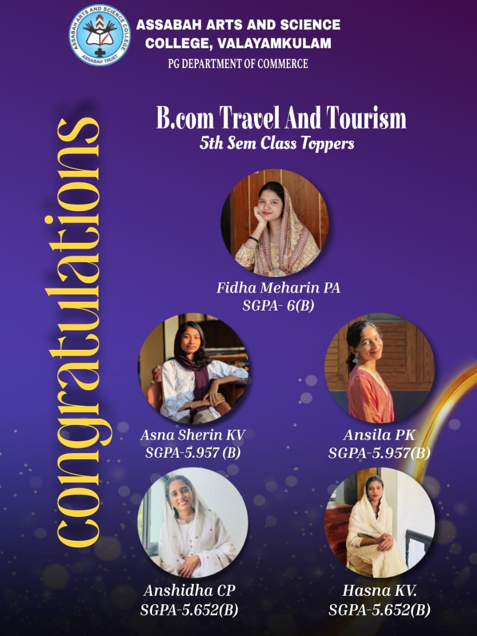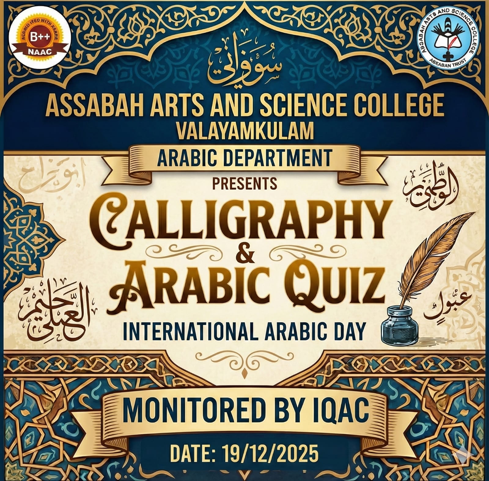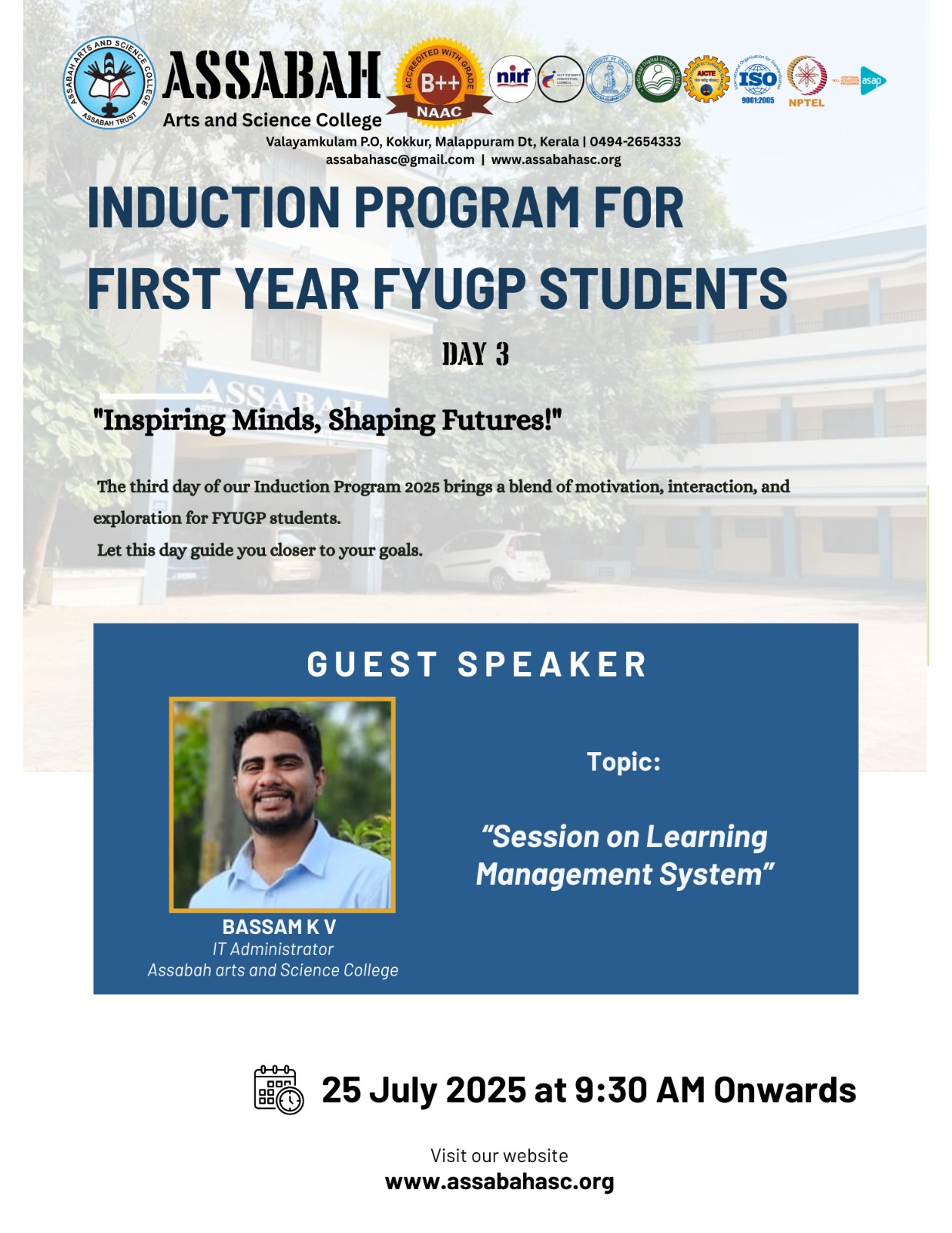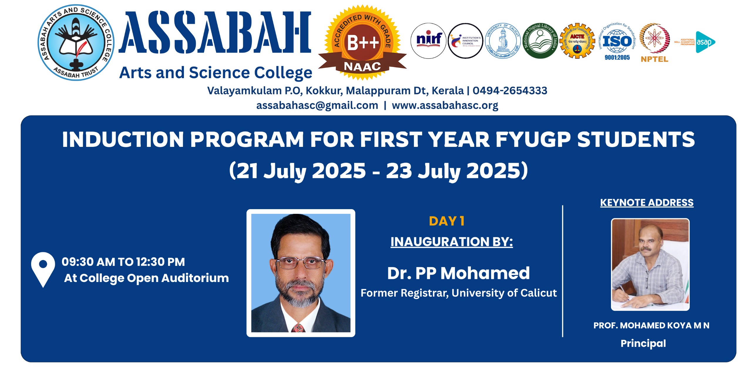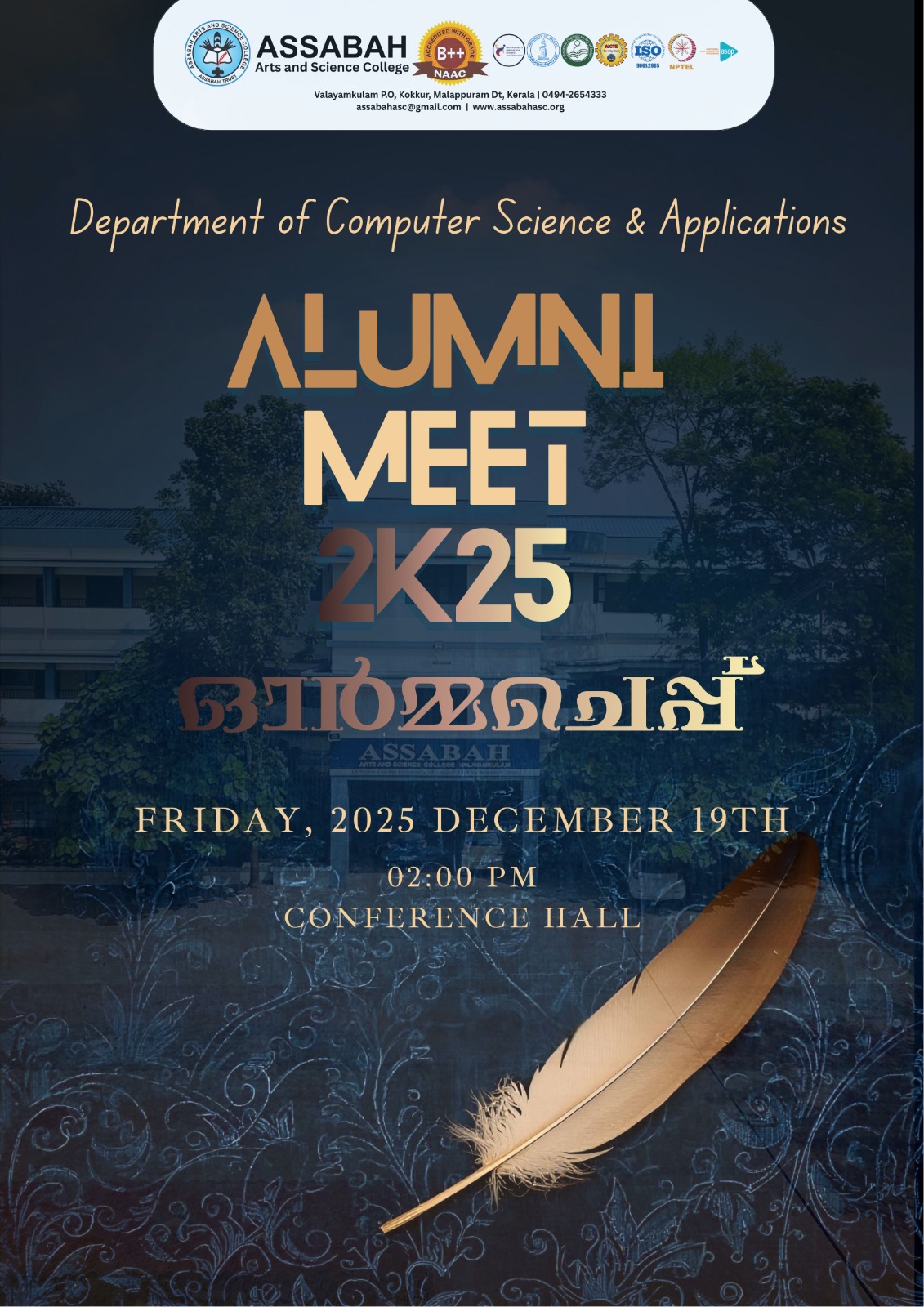 Assabah Arts & Science College,Valayamkulam is a self financing college affiliated to the University of Calicut.The college was established in 2005.The college is run by the Assabah association trust.The other institutions under this management are Assabah Arabic College, Pavittappuram, Assabah Higher secondary school, Pavittappuram, and MVM Residential higher secondary school, Valayamkulam. Assabah Arts &Science college is situated very close to Kuttippuram-Thrissur state highway at Valayamkulam, Kokkur in the Alamcode panchayath, Malappuram district.