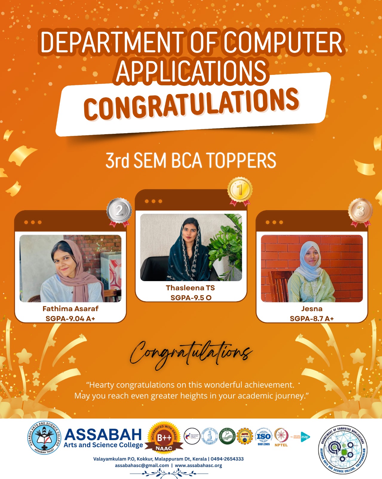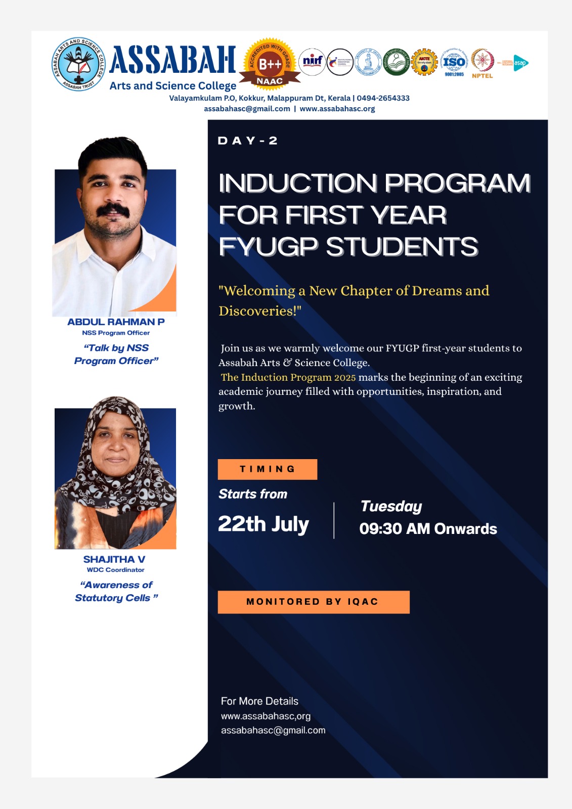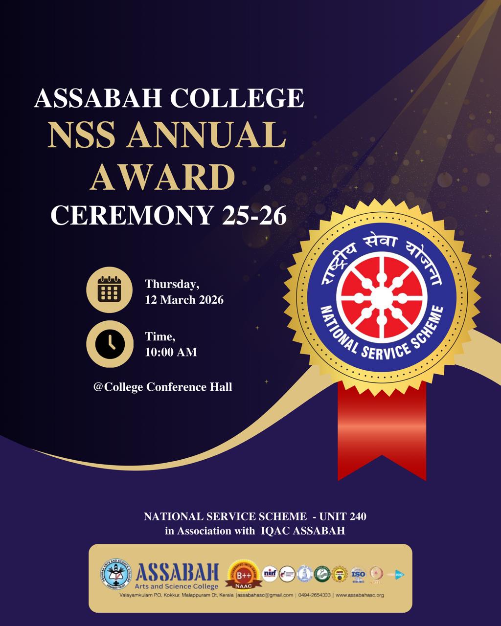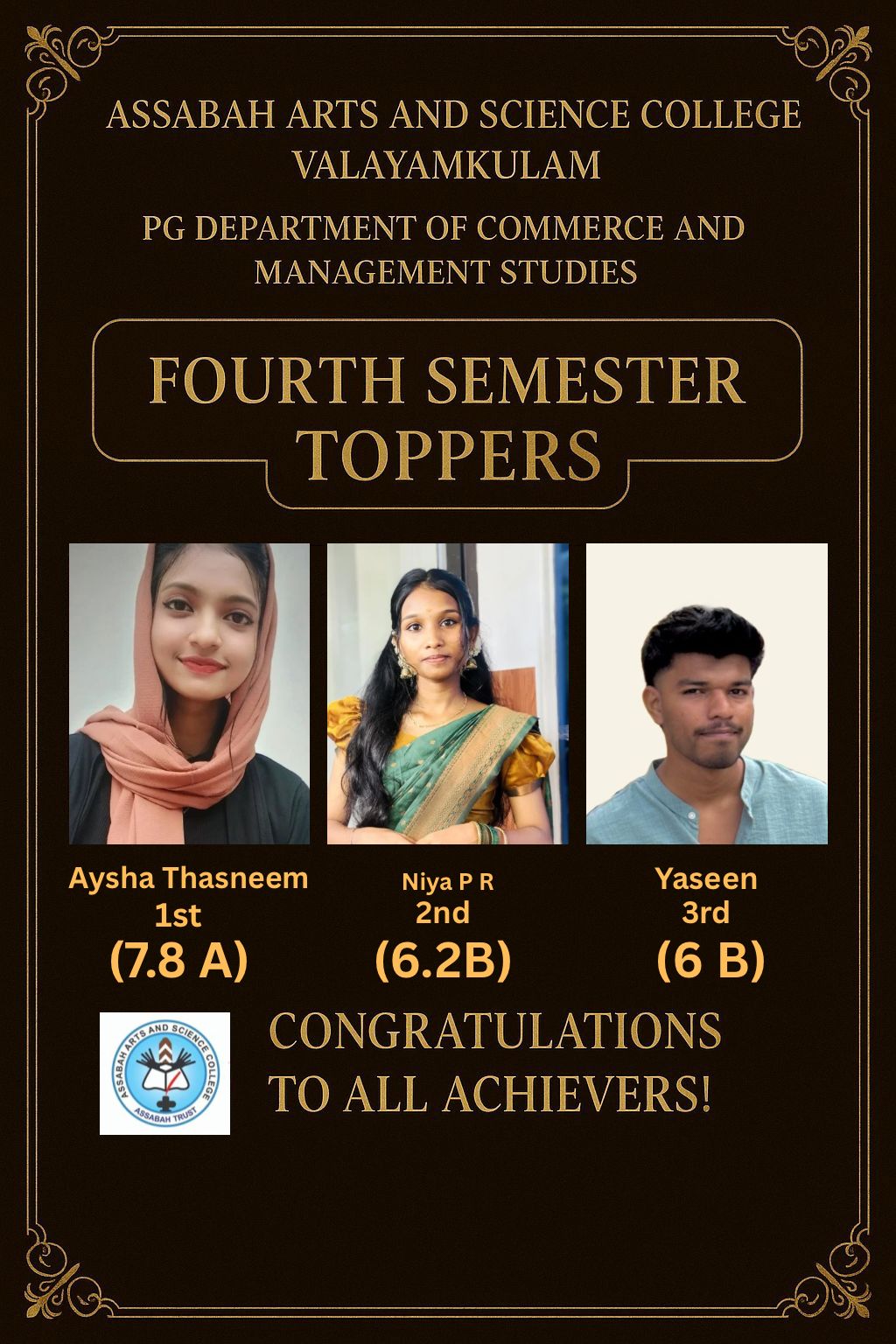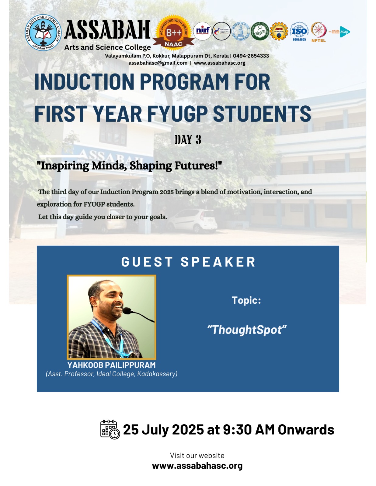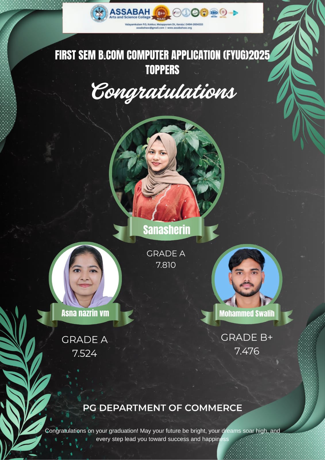 Assabah Arts & Science College,Valayamkulam is a self financing college affiliated to the University of Calicut.The college was established in 2005.The college is run by the Assabah association trust.The other institutions under this management are Assabah Arabic College, Pavittappuram, Assabah Higher secondary school, Pavittappuram, and MVM Residential higher secondary school, Valayamkulam. Assabah Arts &Science college is situated very close to Kuttippuram-Thrissur state highway at Valayamkulam, Kokkur in the Alamcode panchayath, Malappuram district.