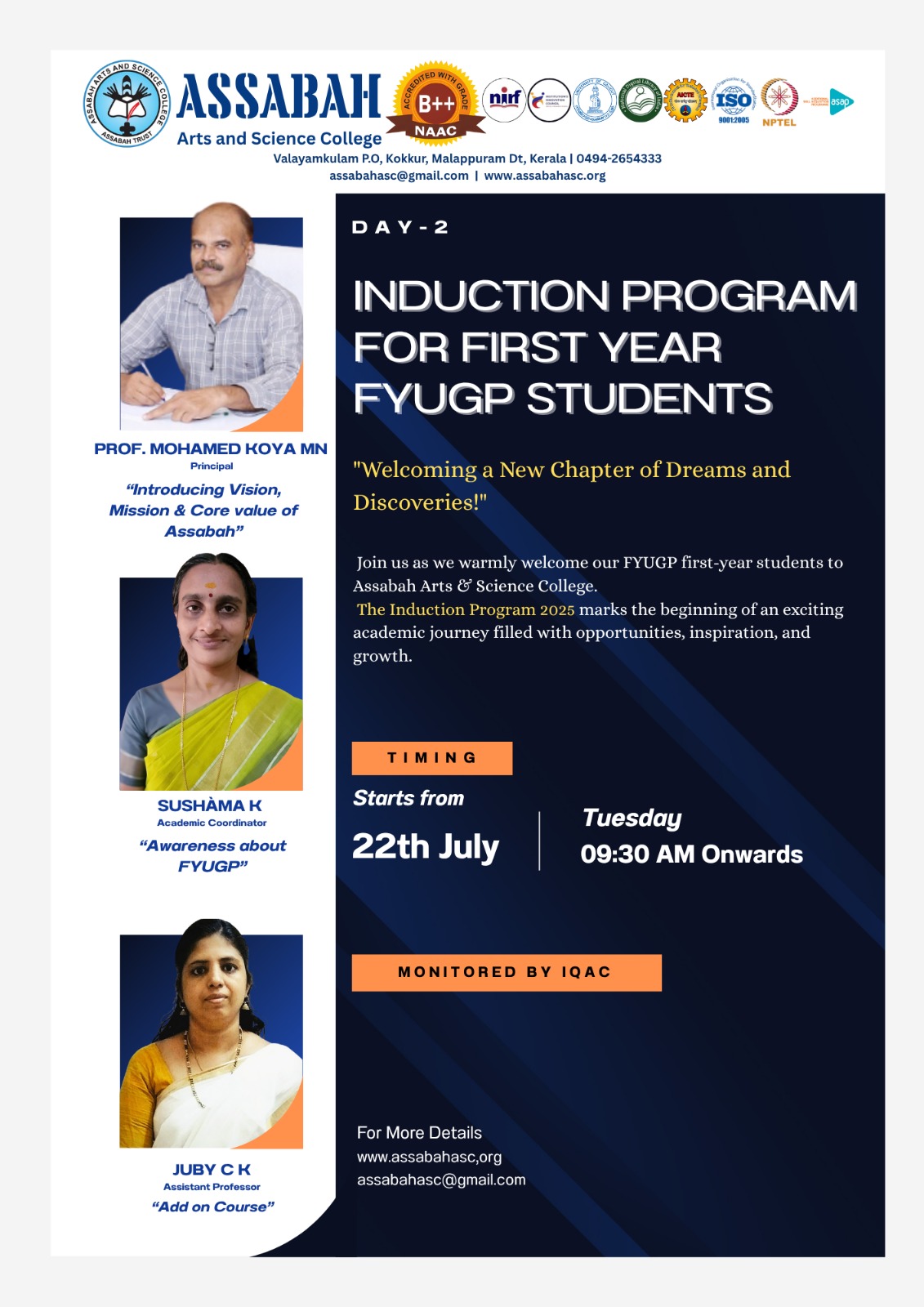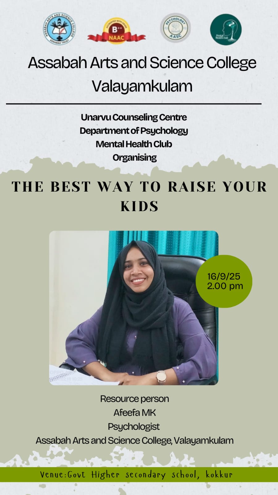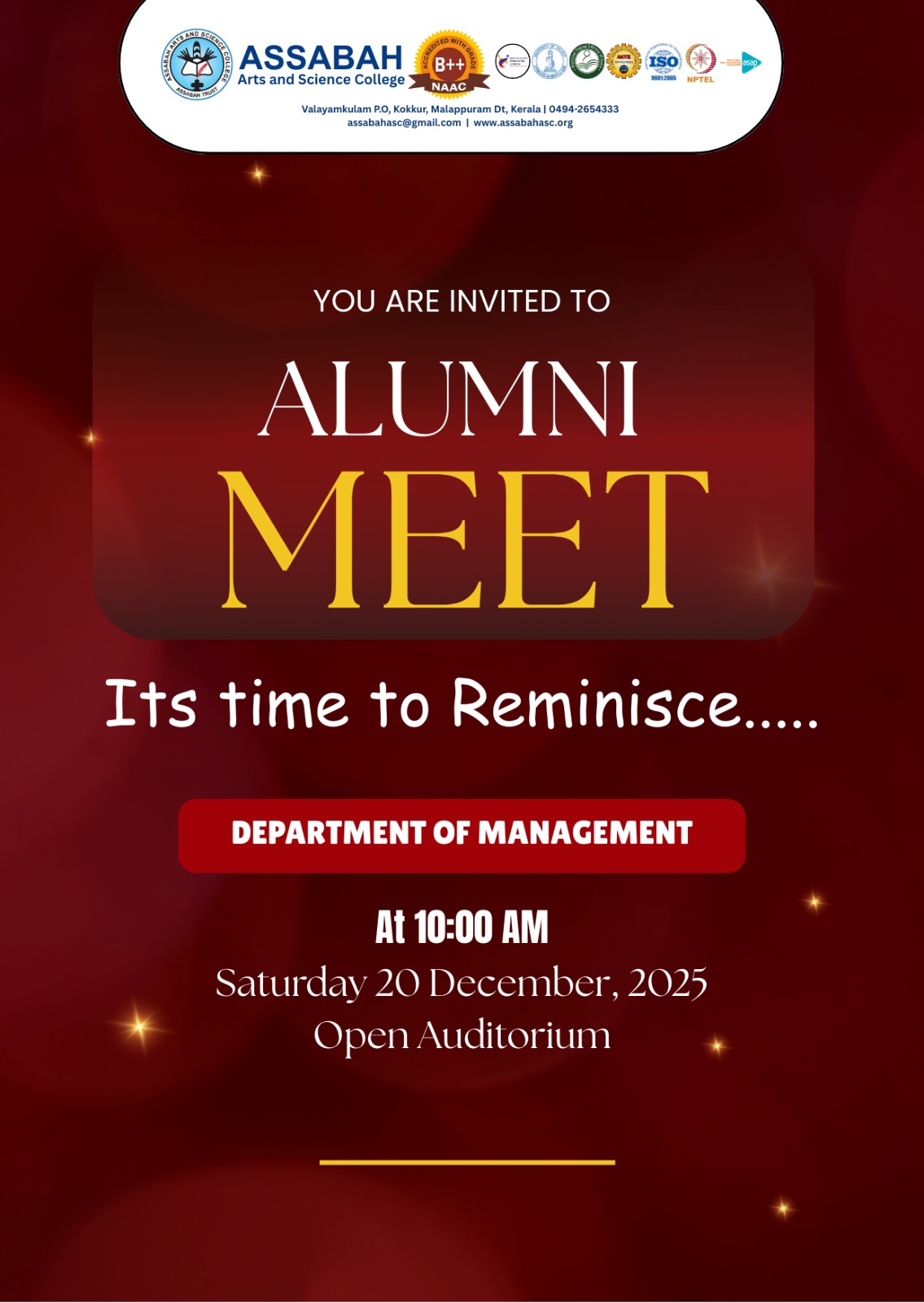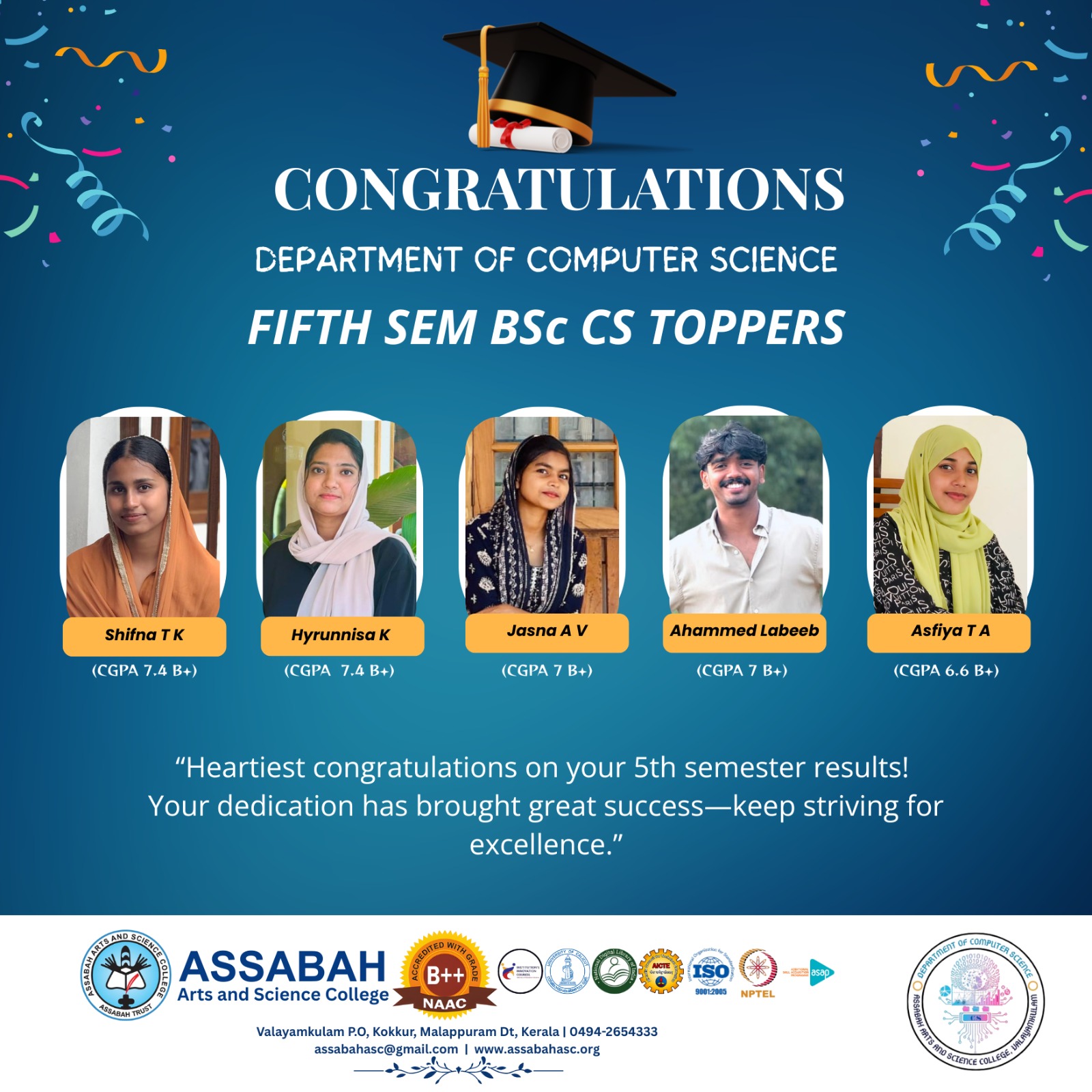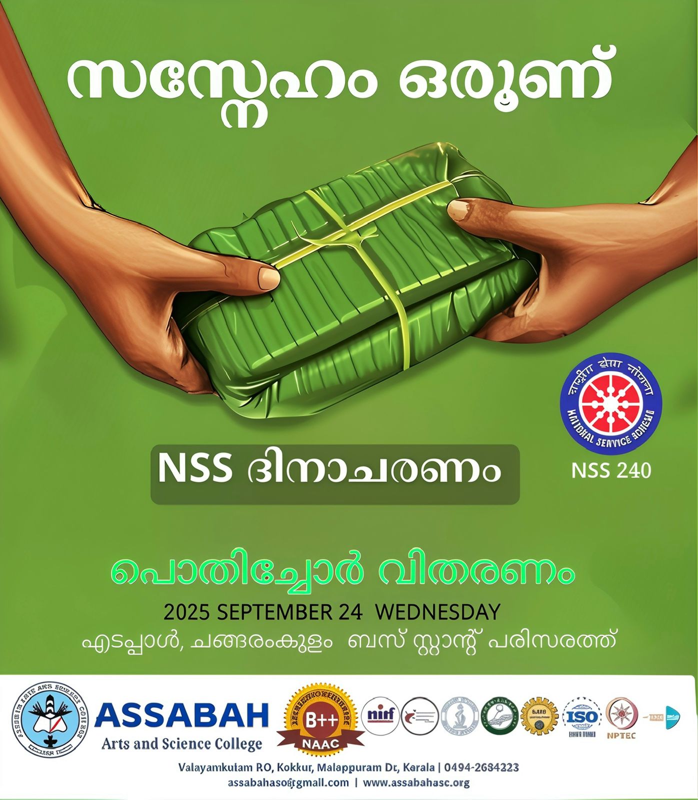 Assabah Arts & Science College,Valayamkulam is a self financing college affiliated to the University of Calicut.The college was established in 2005.The college is run by the Assabah association trust.The other institutions under this management are Assabah Arabic College, Pavittappuram, Assabah Higher secondary school, Pavittappuram, and MVM Residential higher secondary school, Valayamkulam. Assabah Arts &Science college is situated very close to Kuttippuram-Thrissur state highway at Valayamkulam, Kokkur in the Alamcode panchayath, Malappuram district.