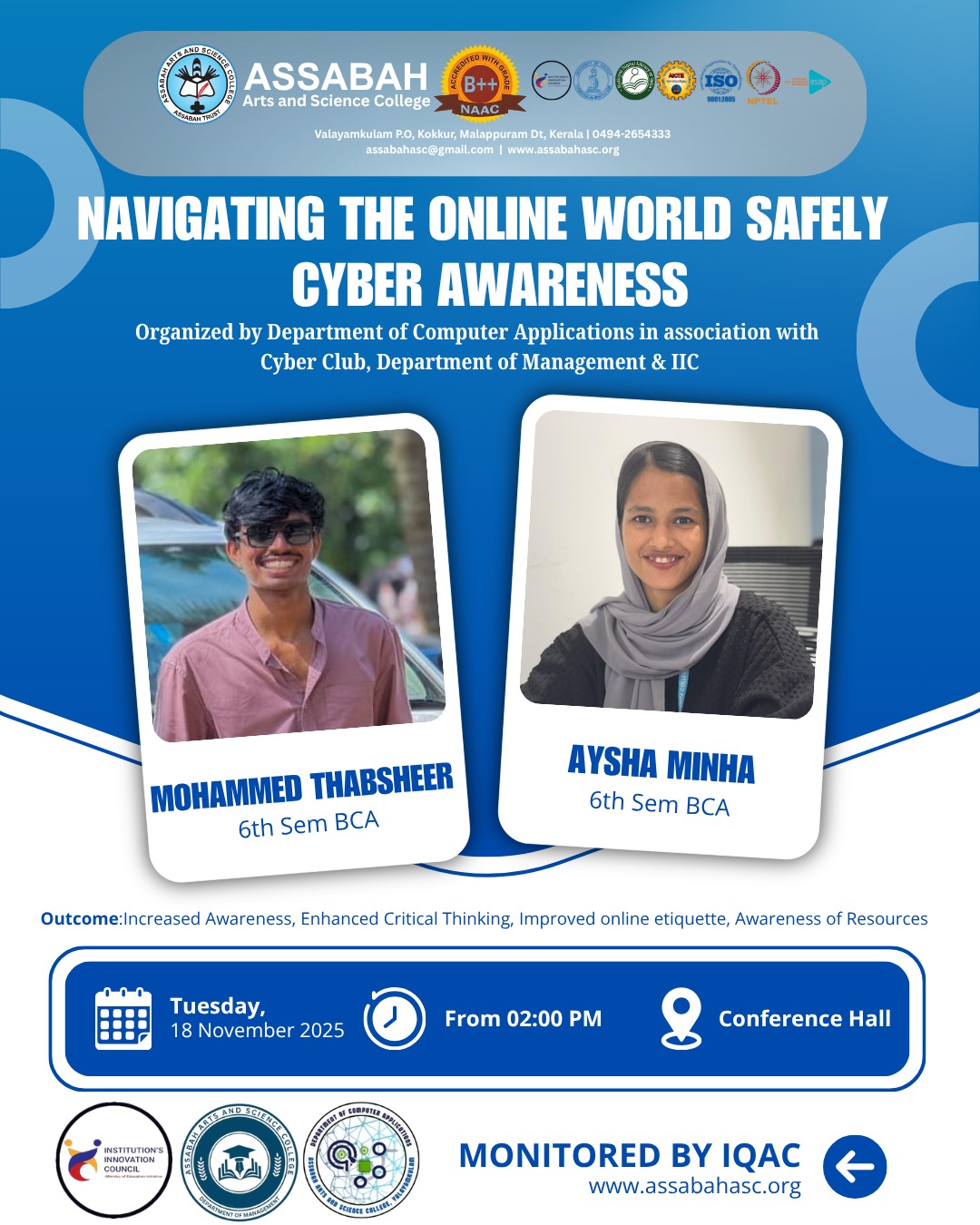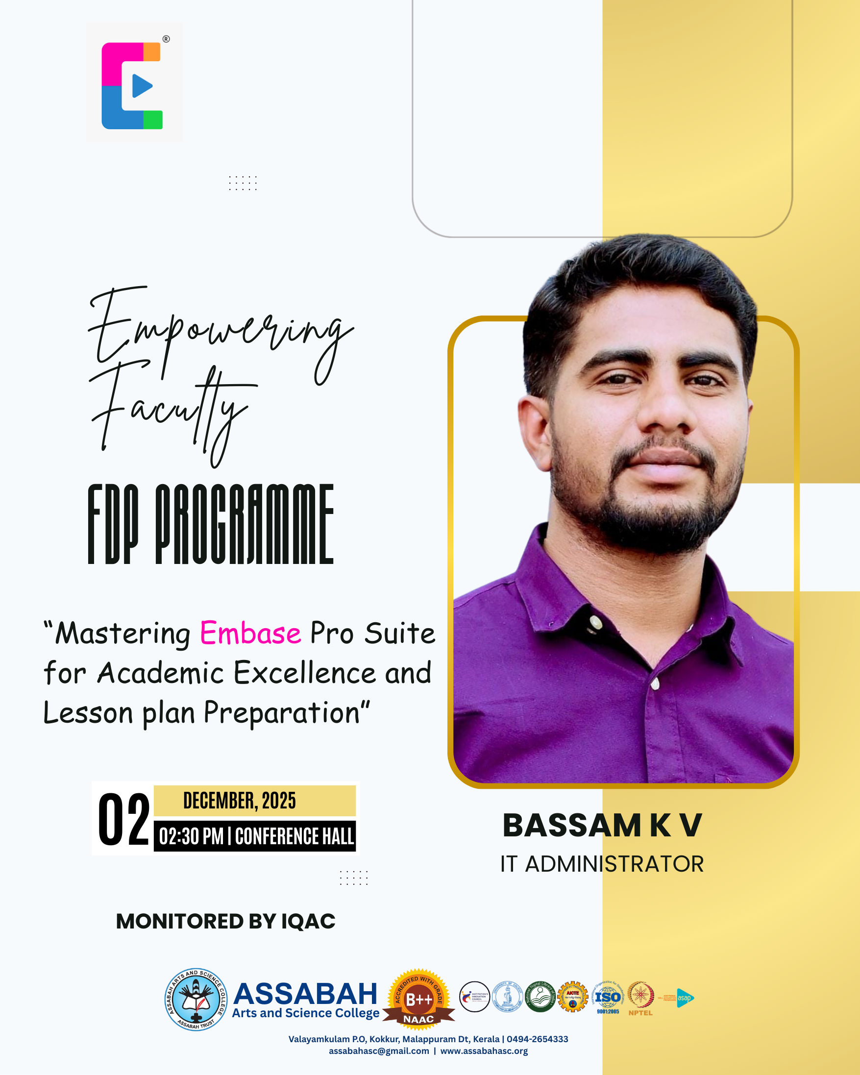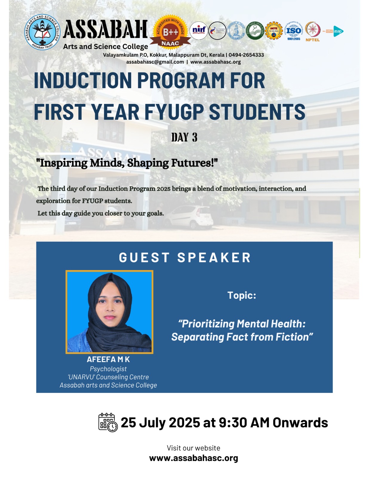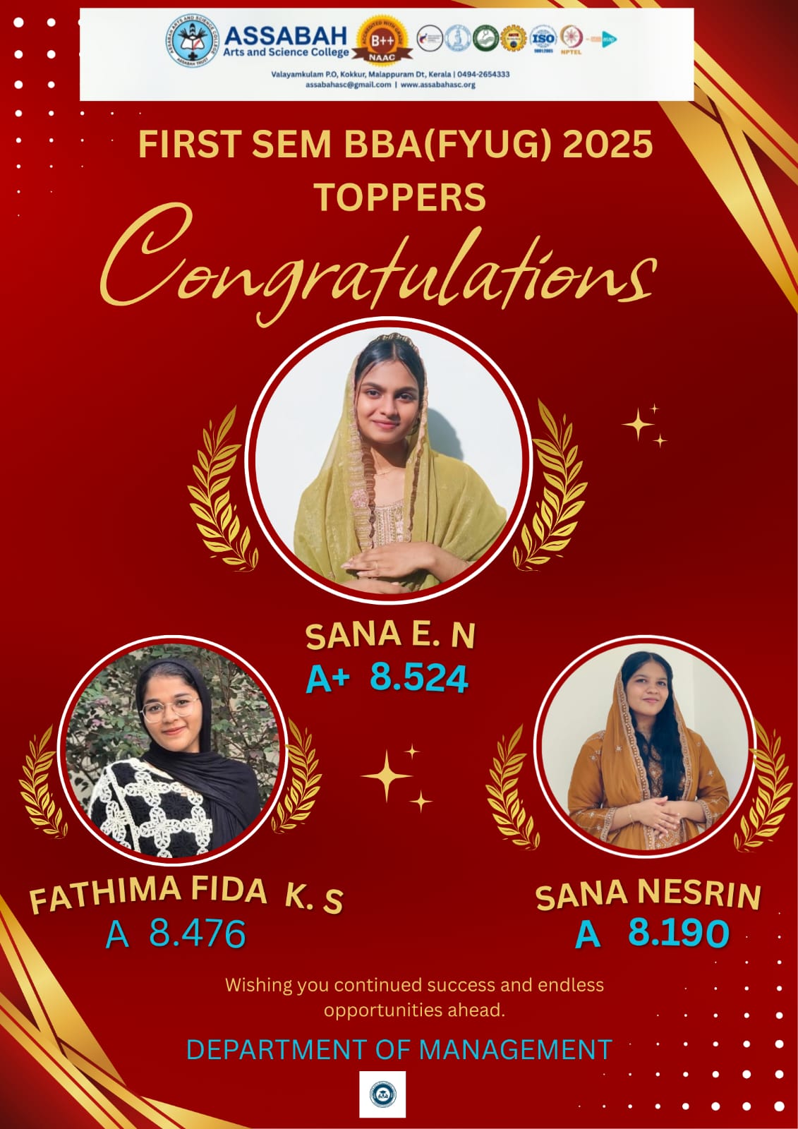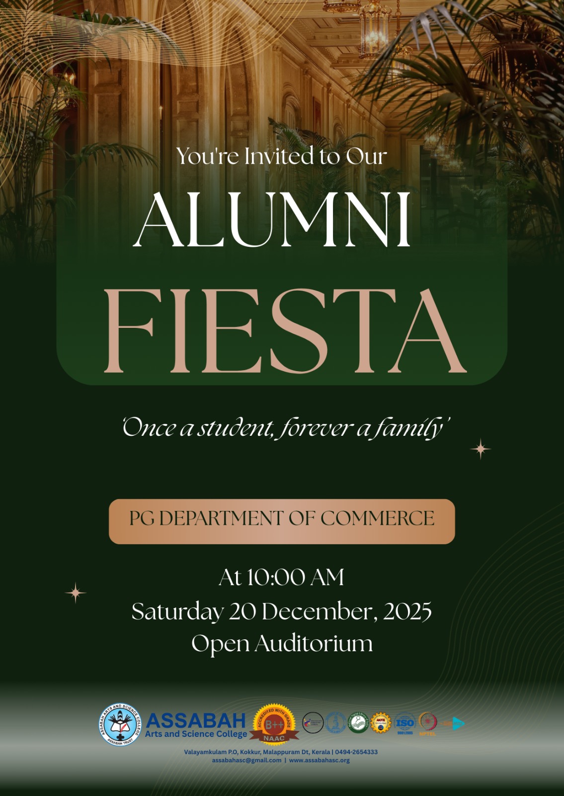 Assabah Arts & Science College,Valayamkulam is a self financing college affiliated to the University of Calicut.The college was established in 2005.The college is run by the Assabah association trust.The other institutions under this management are Assabah Arabic College, Pavittappuram, Assabah Higher secondary school, Pavittappuram, and MVM Residential higher secondary school, Valayamkulam. Assabah Arts &Science college is situated very close to Kuttippuram-Thrissur state highway at Valayamkulam, Kokkur in the Alamcode panchayath, Malappuram district.