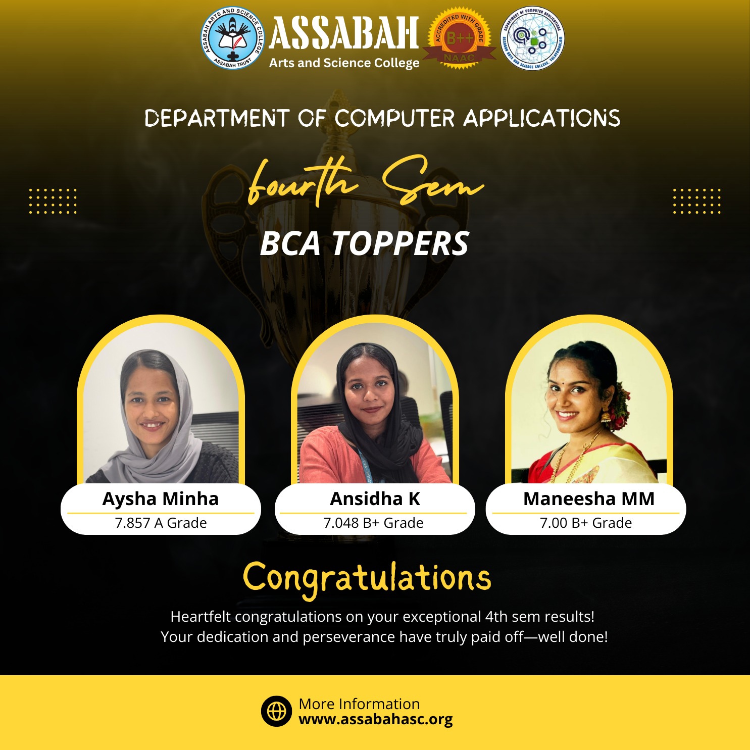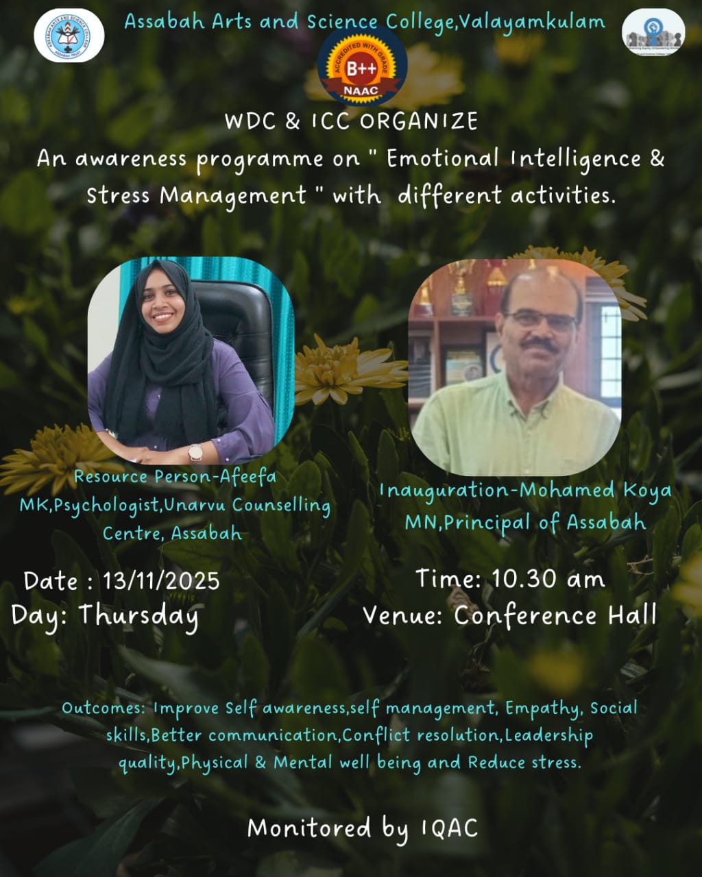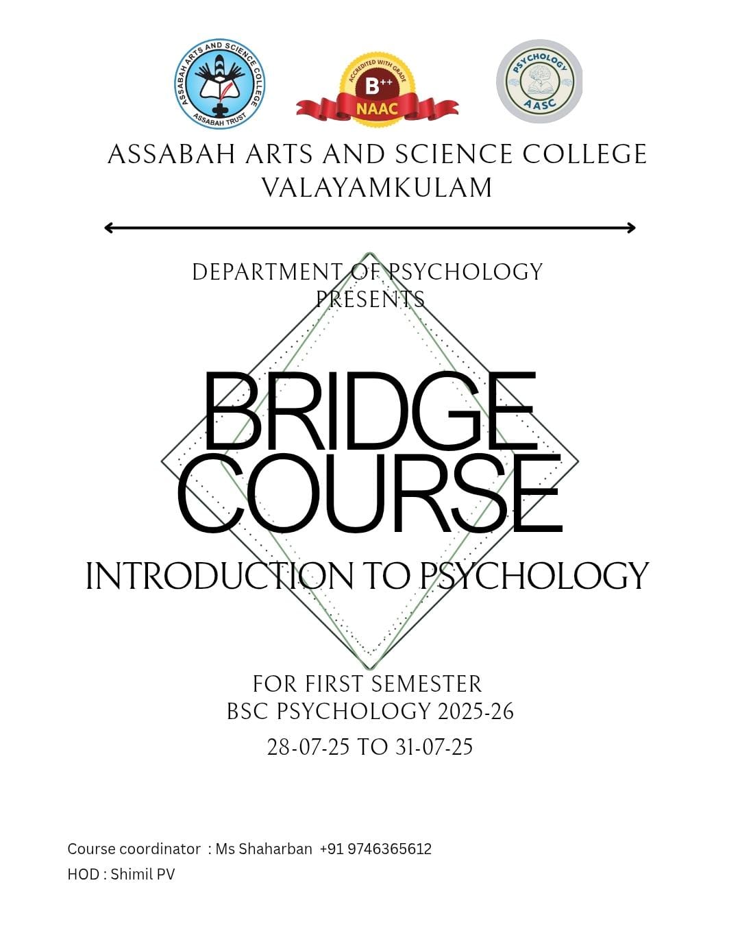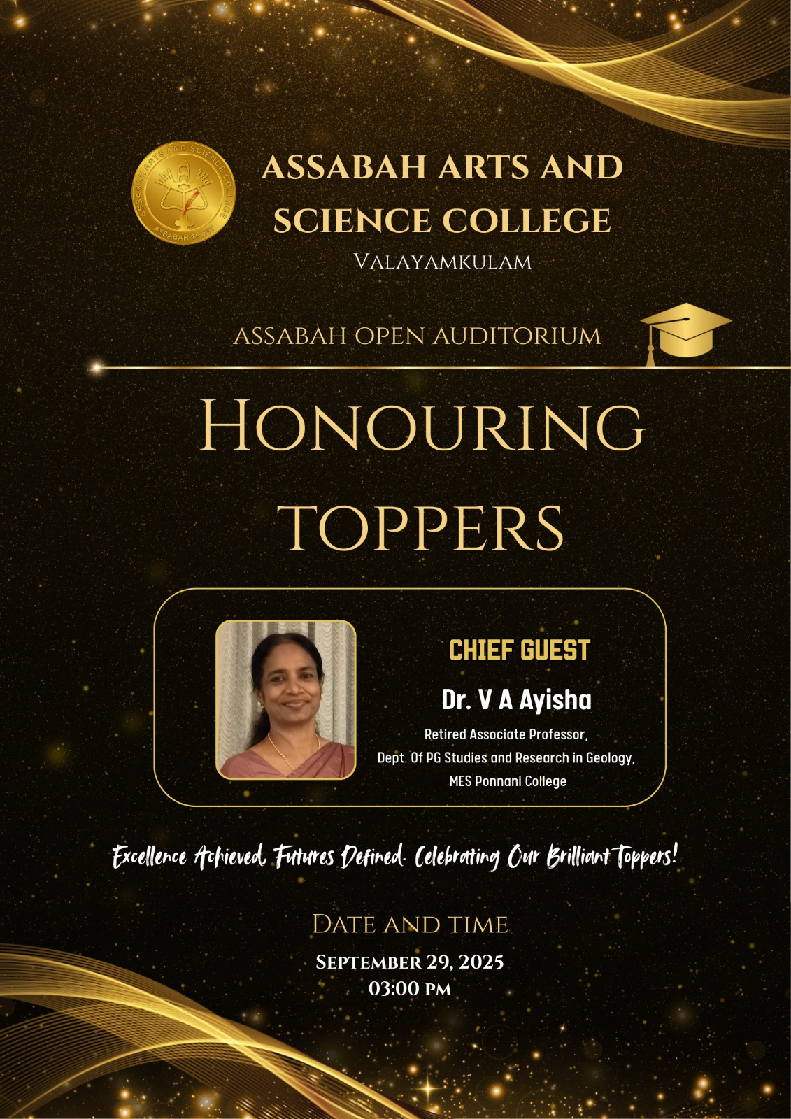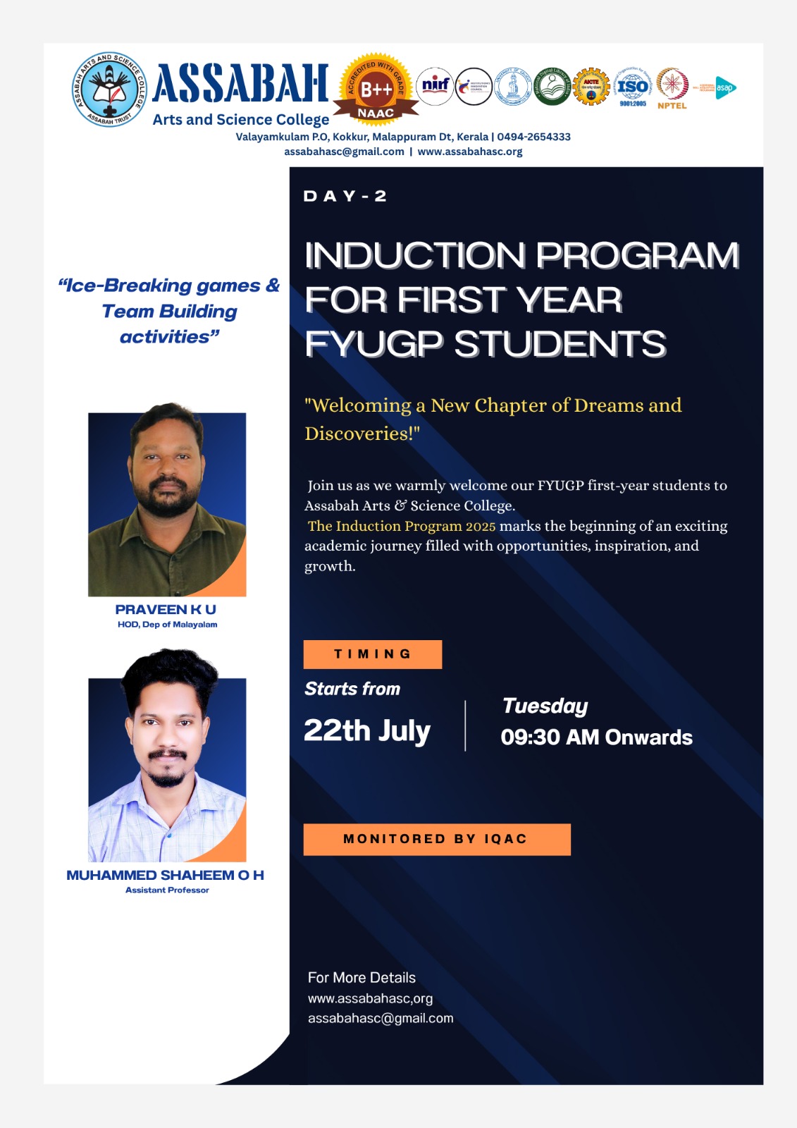 Assabah Arts & Science College,Valayamkulam is a self financing college affiliated to the University of Calicut.The college was established in 2005.The college is run by the Assabah association trust.The other institutions under this management are Assabah Arabic College, Pavittappuram, Assabah Higher secondary school, Pavittappuram, and MVM Residential higher secondary school, Valayamkulam. Assabah Arts &Science college is situated very close to Kuttippuram-Thrissur state highway at Valayamkulam, Kokkur in the Alamcode panchayath, Malappuram district.