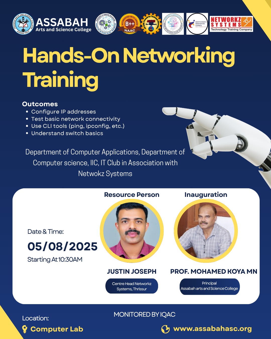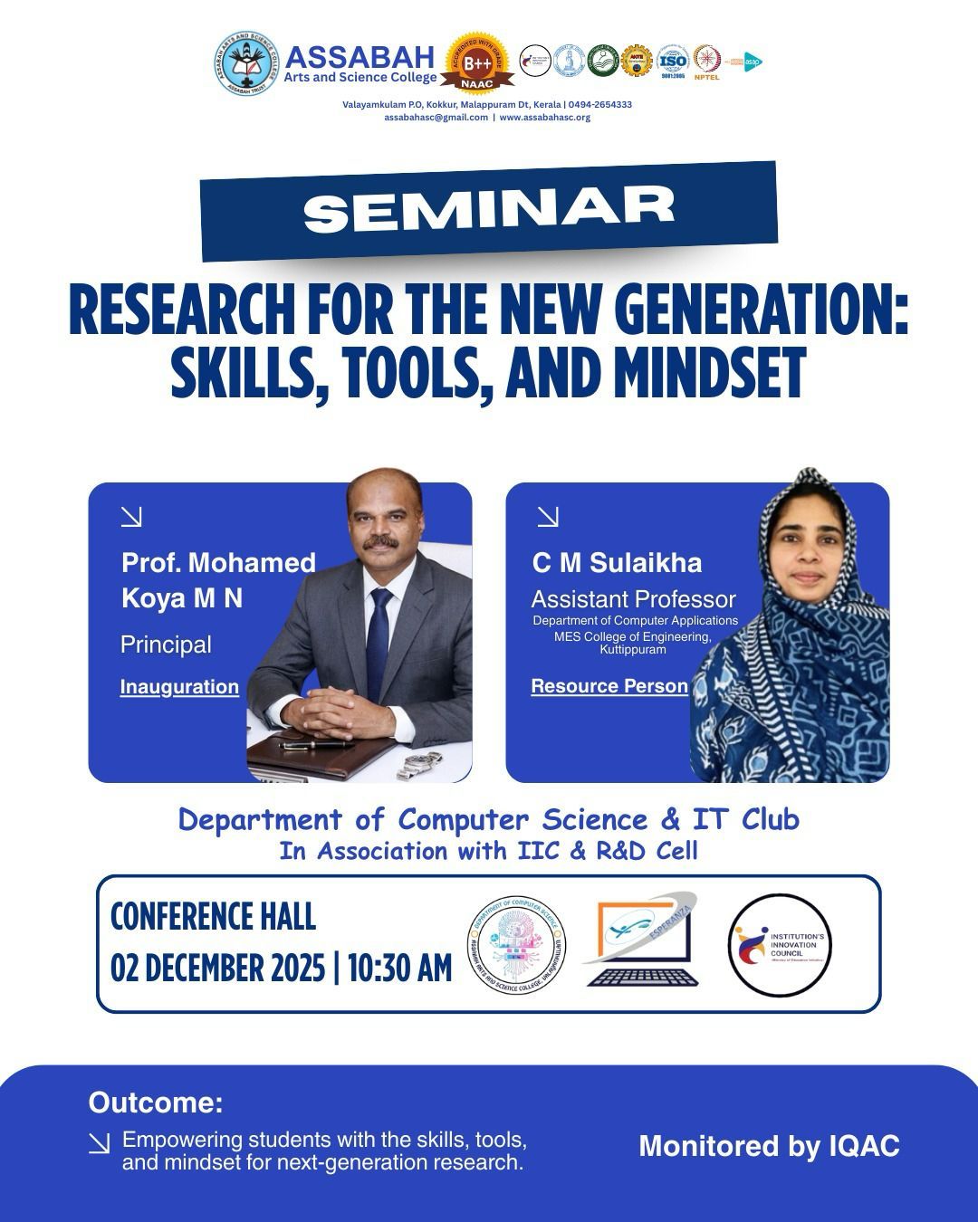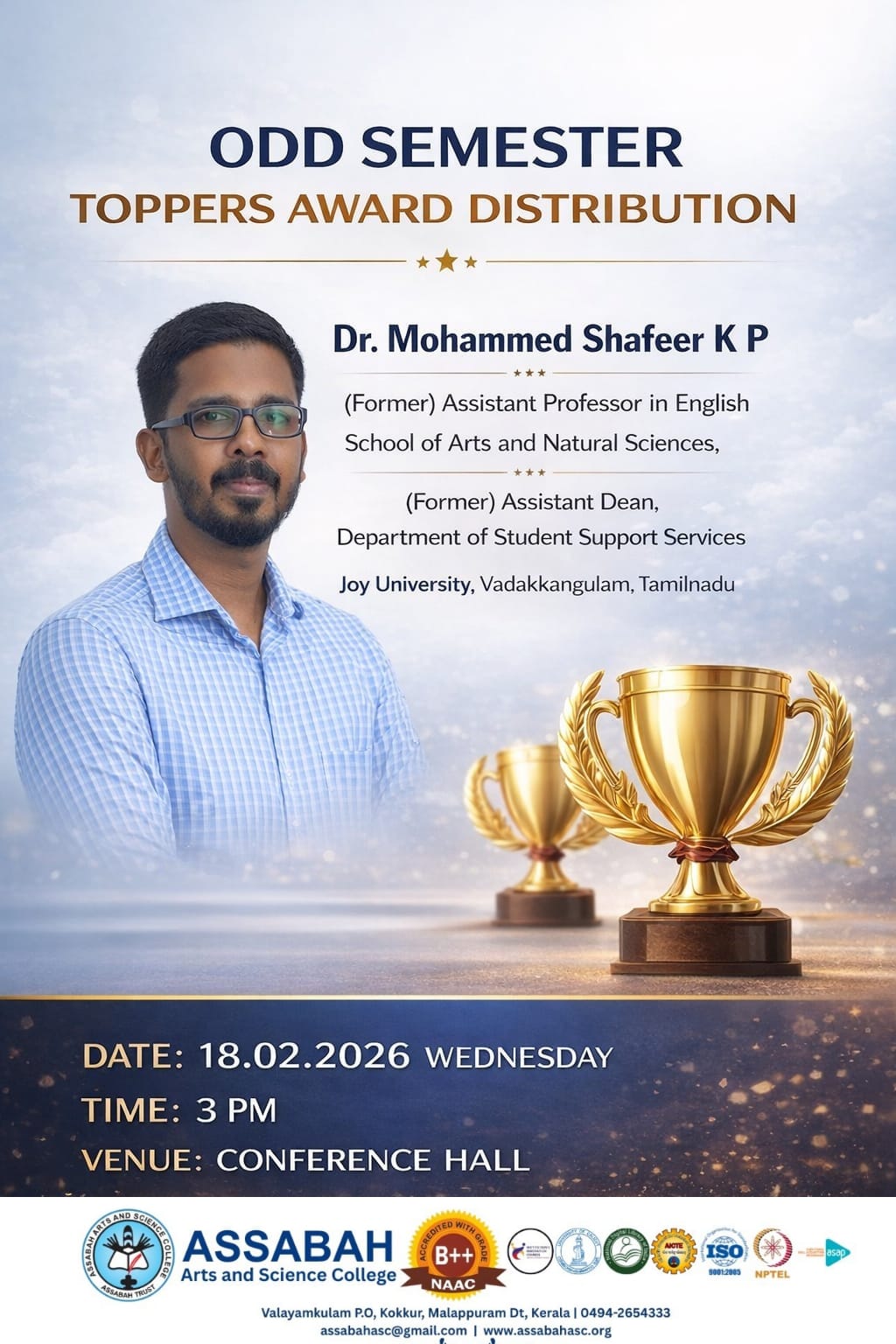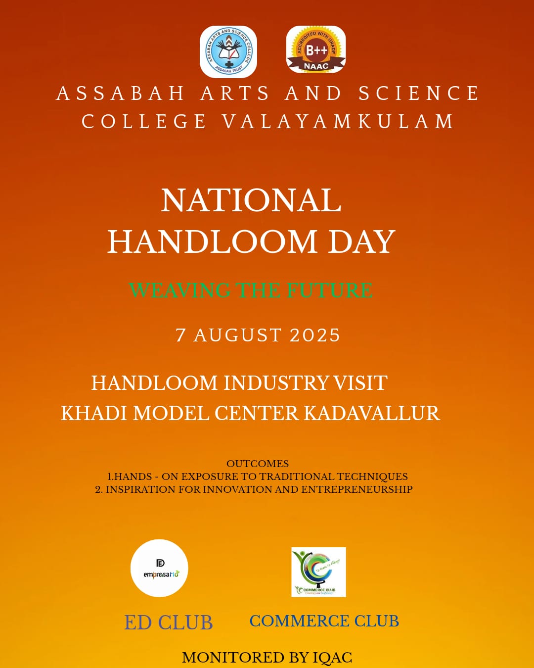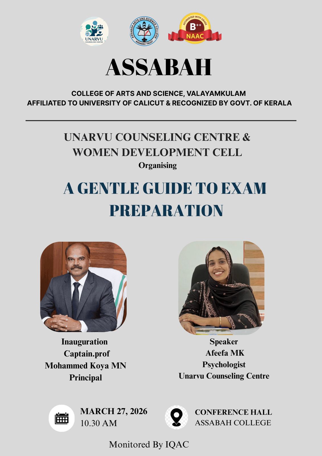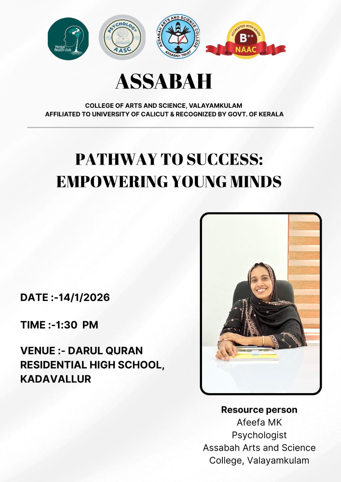 Assabah Arts & Science College,Valayamkulam is a self financing college affiliated to the University of Calicut.The college was established in 2005.The college is run by the Assabah association trust.The other institutions under this management are Assabah Arabic College, Pavittappuram, Assabah Higher secondary school, Pavittappuram, and MVM Residential higher secondary school, Valayamkulam. Assabah Arts &Science college is situated very close to Kuttippuram-Thrissur state highway at Valayamkulam, Kokkur in the Alamcode panchayath, Malappuram district.