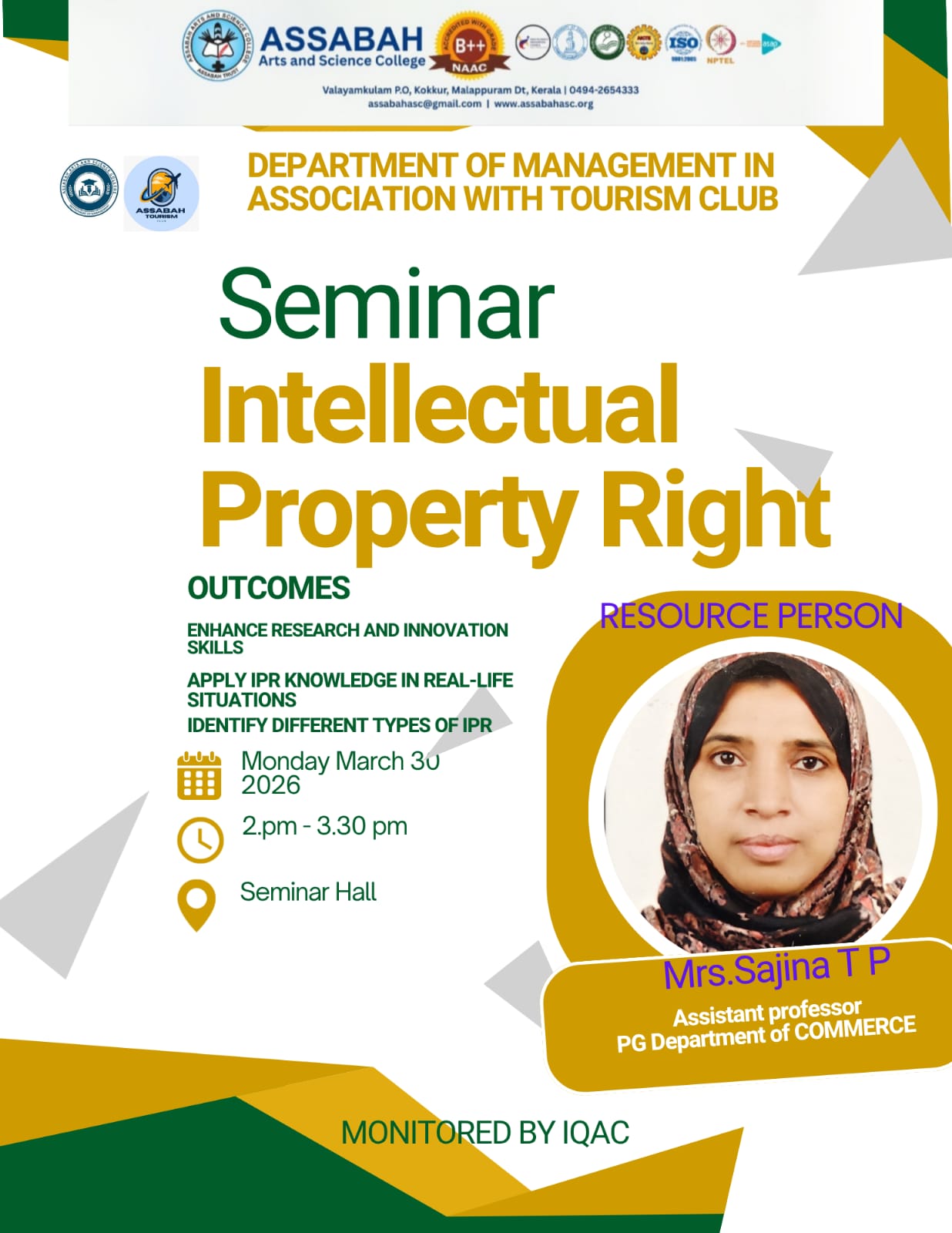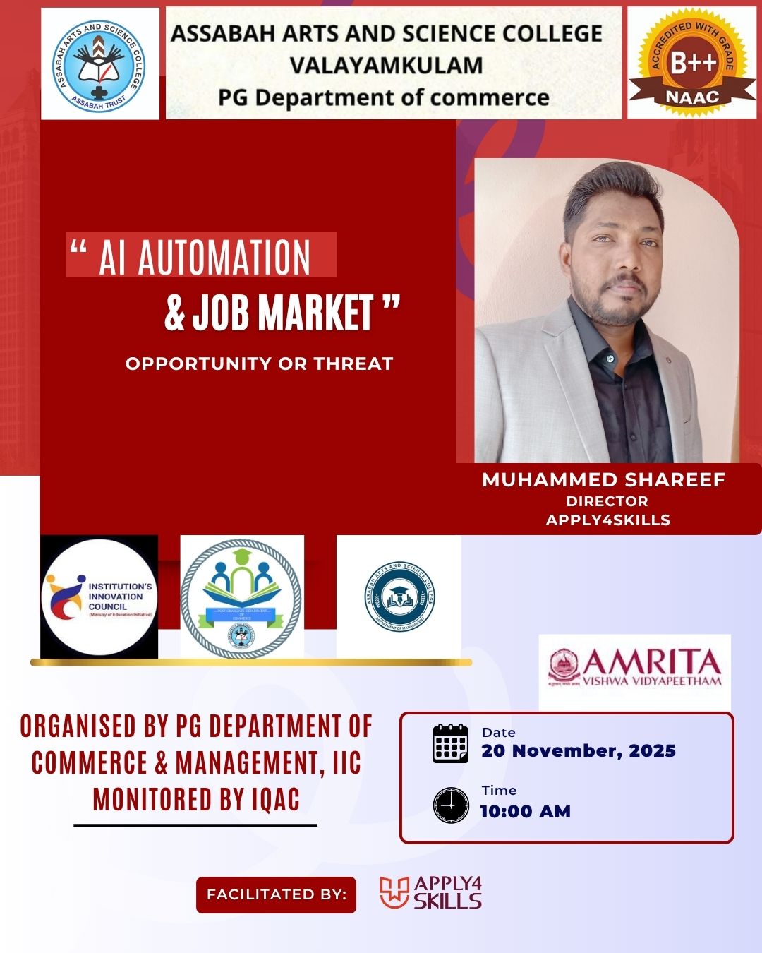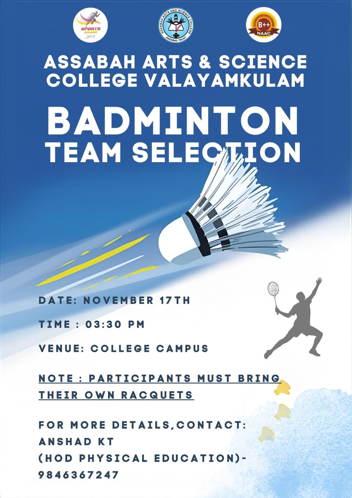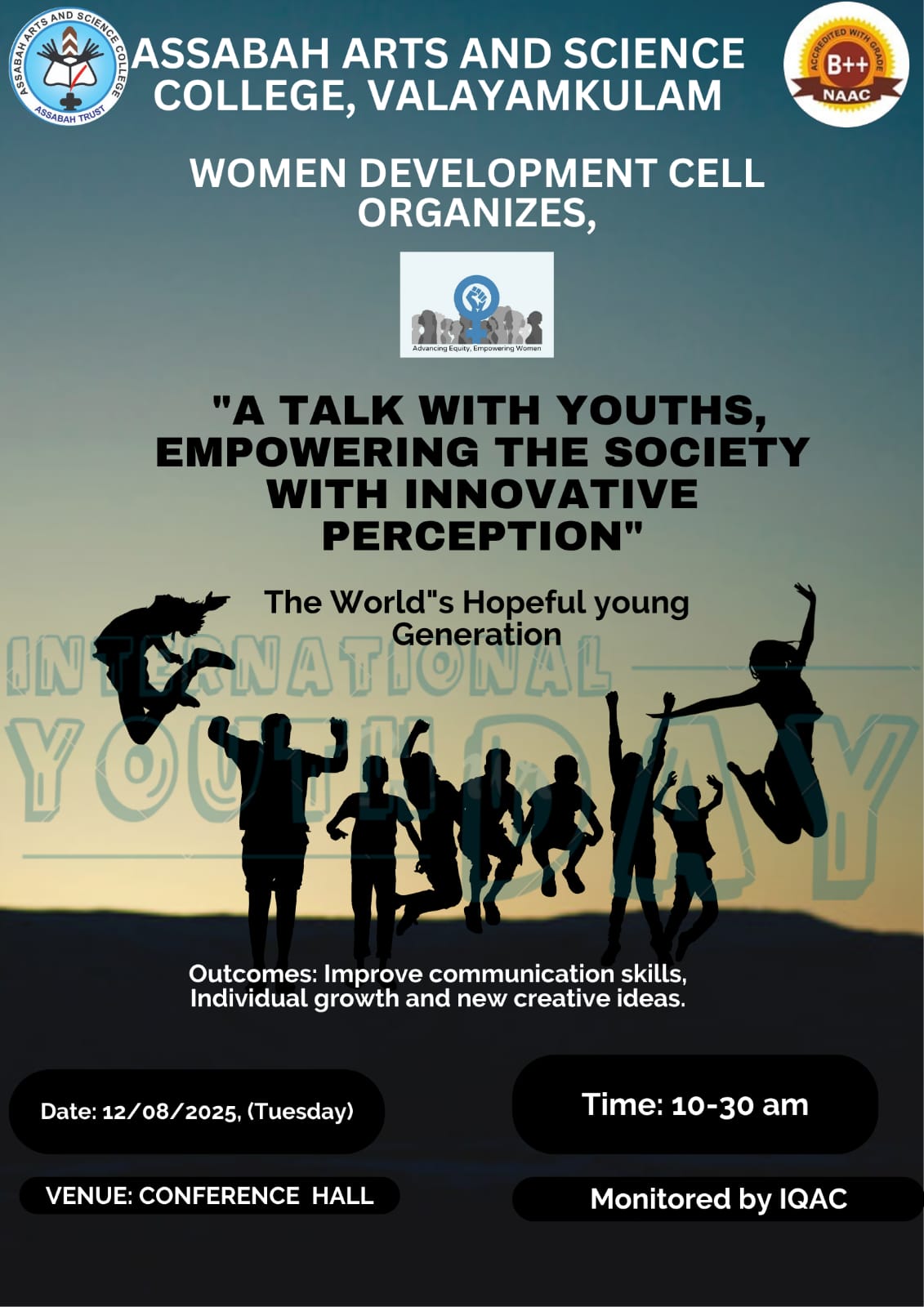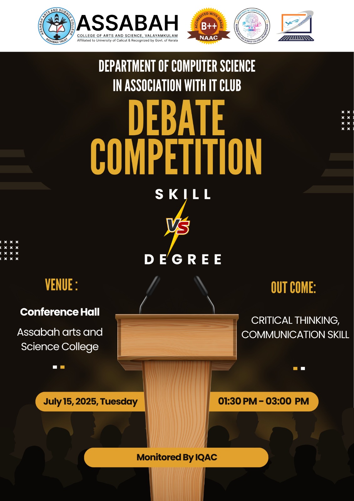 Assabah Arts & Science College,Valayamkulam is a self financing college affiliated to the University of Calicut.The college was established in 2005.The college is run by the Assabah association trust.The other institutions under this management are Assabah Arabic College, Pavittappuram, Assabah Higher secondary school, Pavittappuram, and MVM Residential higher secondary school, Valayamkulam. Assabah Arts &Science college is situated very close to Kuttippuram-Thrissur state highway at Valayamkulam, Kokkur in the Alamcode panchayath, Malappuram district.