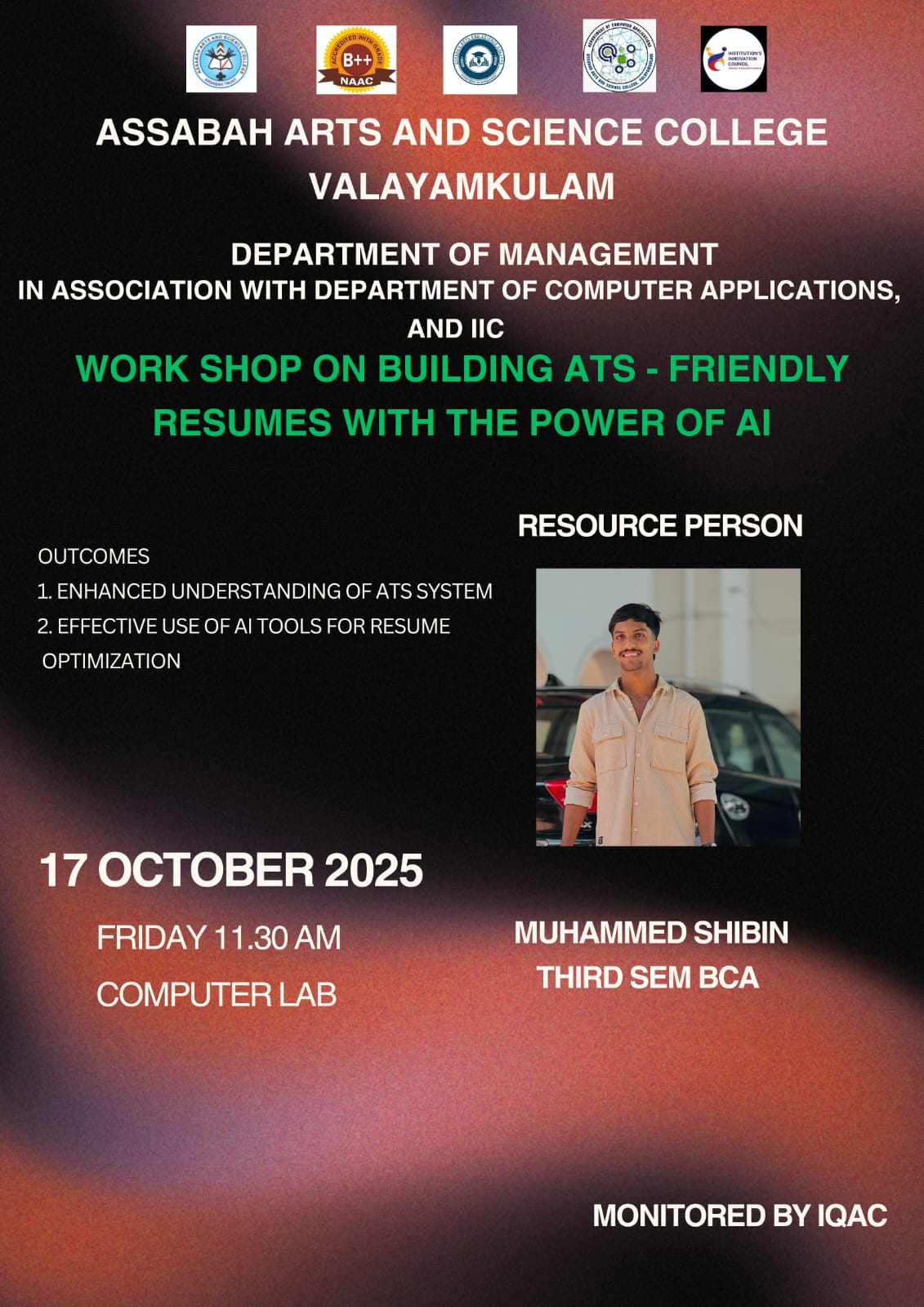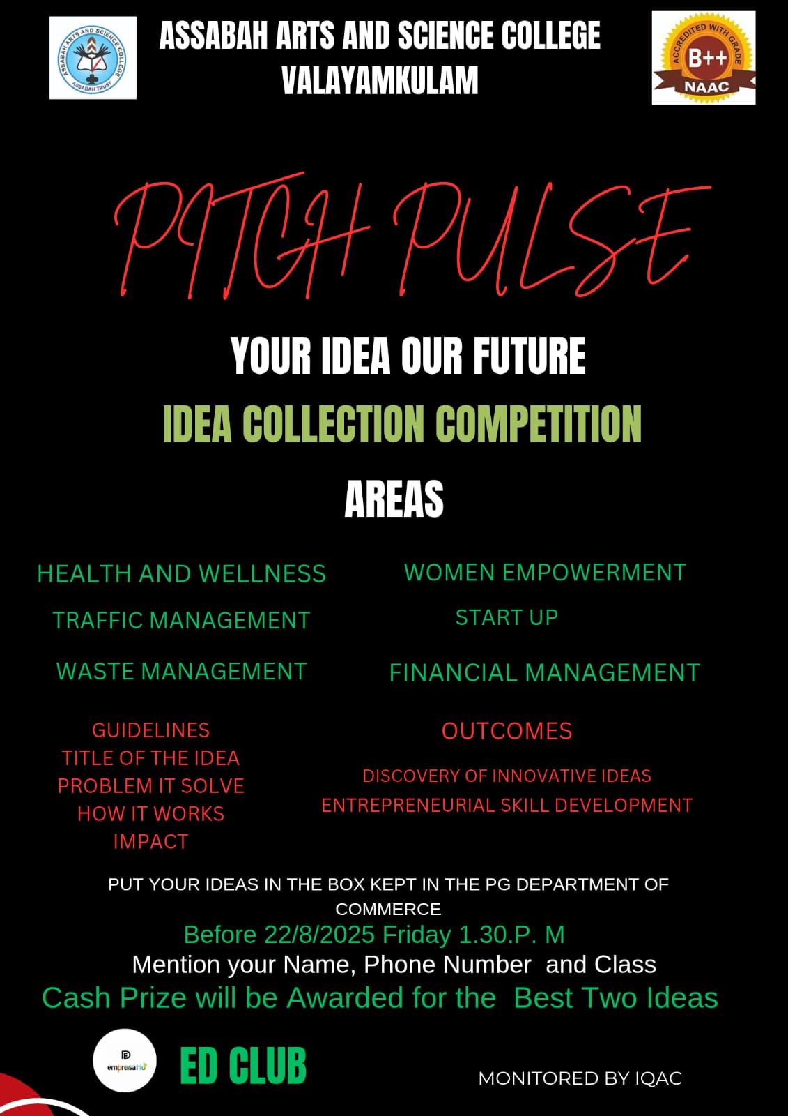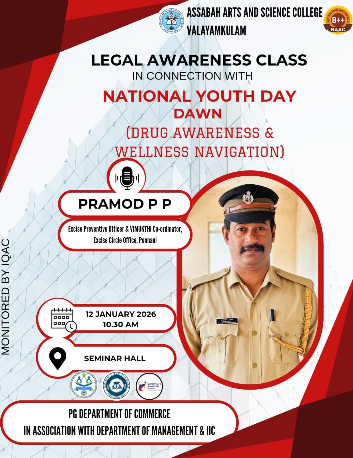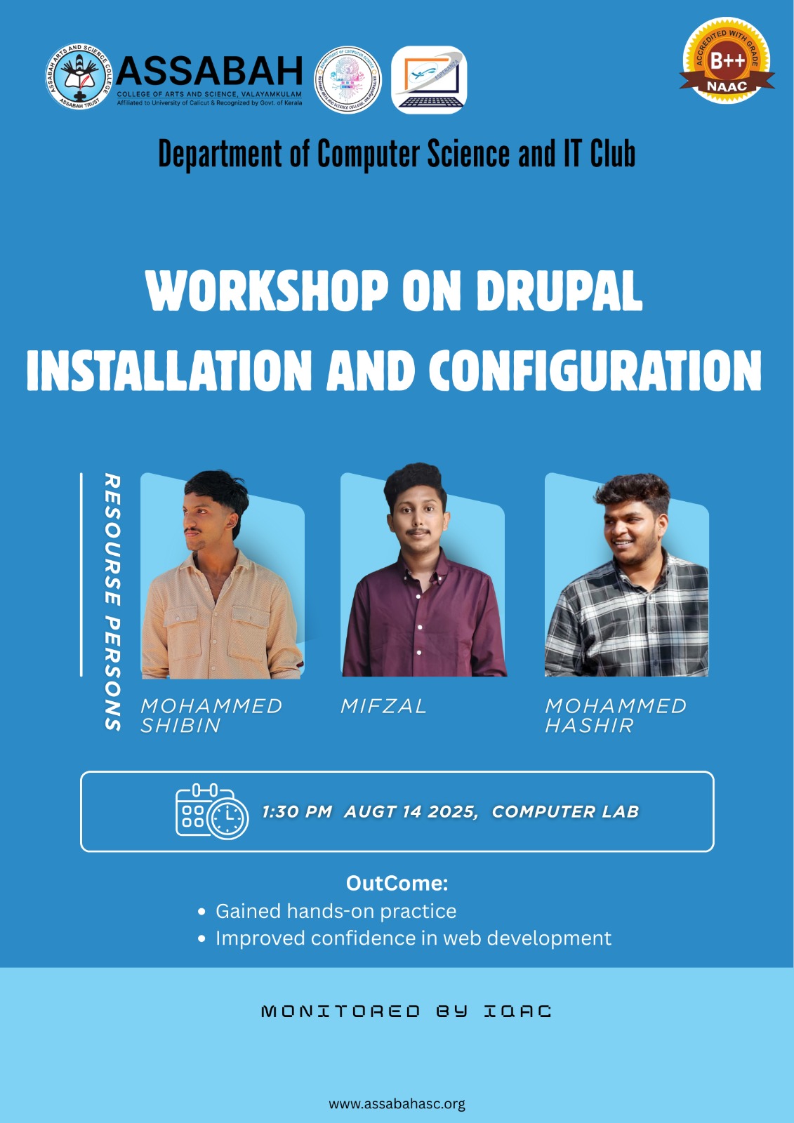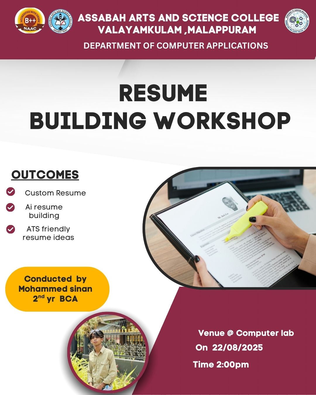 Assabah Arts & Science College,Valayamkulam is a self financing college affiliated to the University of Calicut.The college was established in 2005.The college is run by the Assabah association trust.The other institutions under this management are Assabah Arabic College, Pavittappuram, Assabah Higher secondary school, Pavittappuram, and MVM Residential higher secondary school, Valayamkulam. Assabah Arts &Science college is situated very close to Kuttippuram-Thrissur state highway at Valayamkulam, Kokkur in the Alamcode panchayath, Malappuram district.