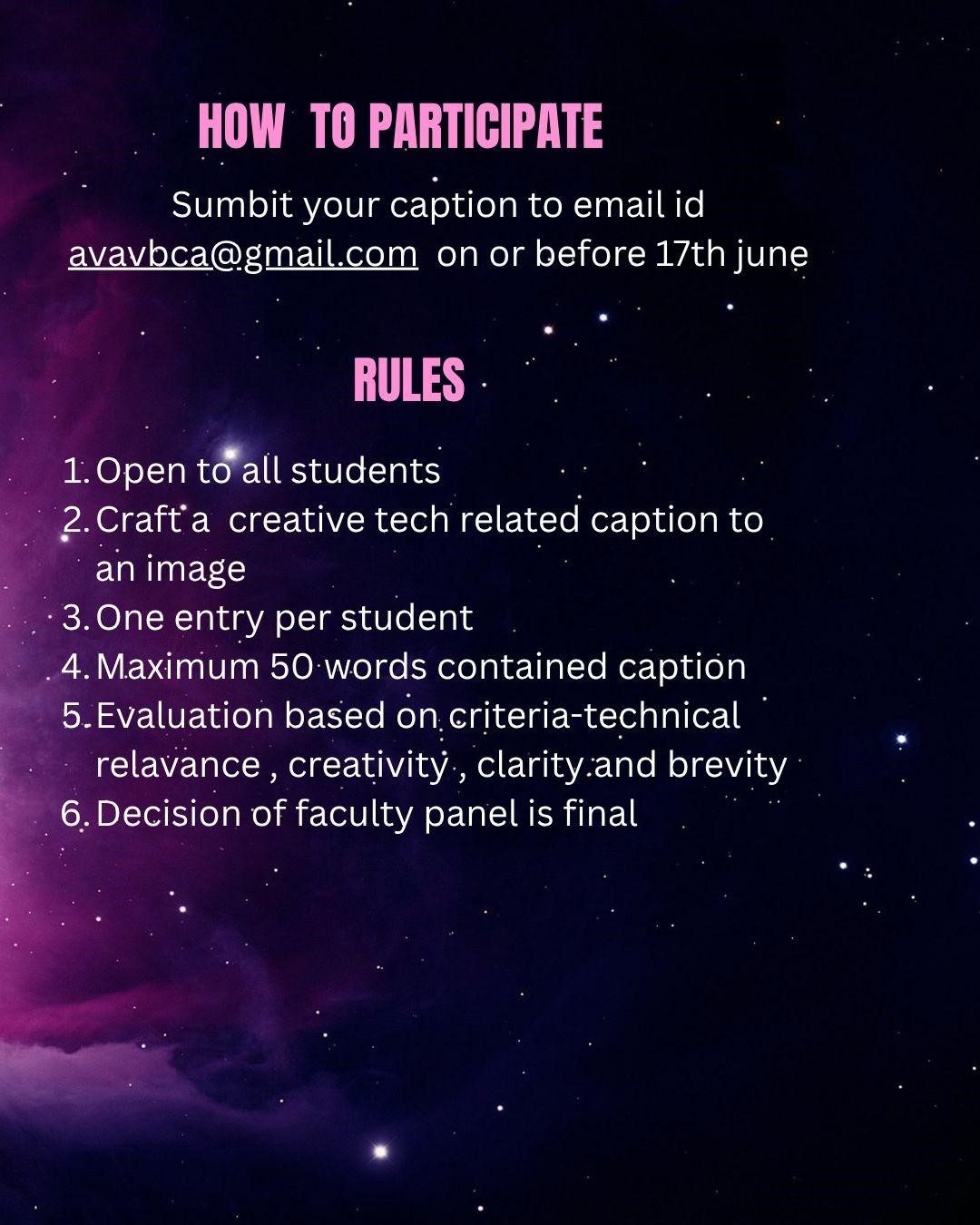 As part of Nature Photography Day, the Department of Computer Applications conducted a Caption Writing Competition based on a tech-themed nature photograph. Students were invited to write witty, thought-provoking, or humorous captions combining elements of nature and technology.