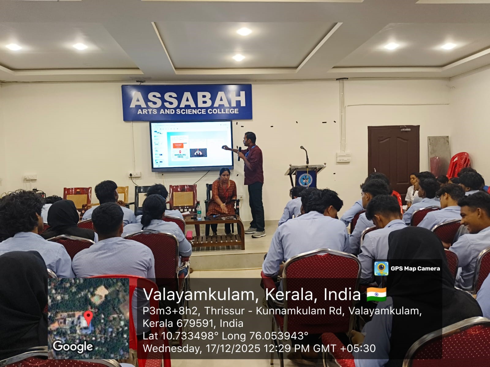 A session on Global Education Opportunities and English Proficiency Tests was organized on 17 December 2025 at the Conference Hall. The program aimed to create awareness among students about higher education opportunities abroad and the importance of English proficiency tests required for international admissions. The session was led by Mr. Salih V., Academic Advisor, Edroot International, who shared his expertise and practical insights on overseas education pathways.