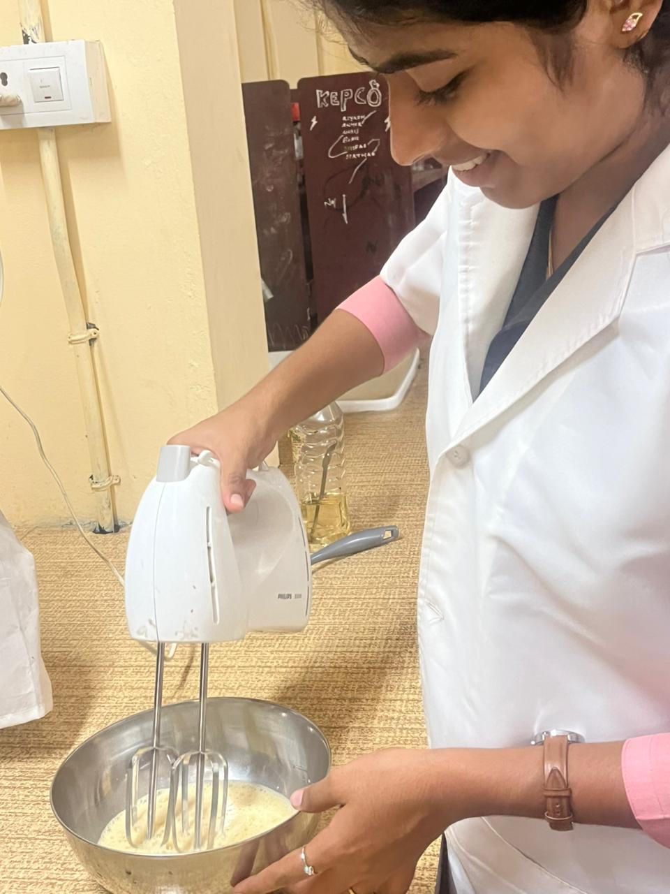 The Department of Food Technology conducted hands‑on training in plum‑cake making as part of the Christmas celebration. The session began with cake mixing, inaugurated by the principal, and food‑technology students worked in different batches to produce various plum cakes. The program mainly focused on developing students’ production skills, and Assistant Professor of the Department of Food Technology, Asad Villoonni, provided guidance to the students.