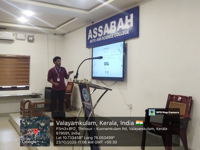 The highlight of the event was a peer presentation by Asif K, Third semester MSc Chemistry student, who presented on topics related to the mole concept and its significance in chemical studies. The presentation was informative and engaging, enhancing the audience’s interest in the subject.