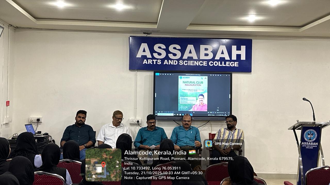 The Natural club of Assabah Arts and Science College Valayamkulam organized a seminar session on organic farming in corner house on Tuesday 21 October 2025,at 10:00 AM in the college seminar hall.The programme was conducted under the coordinators and members of Natural club.