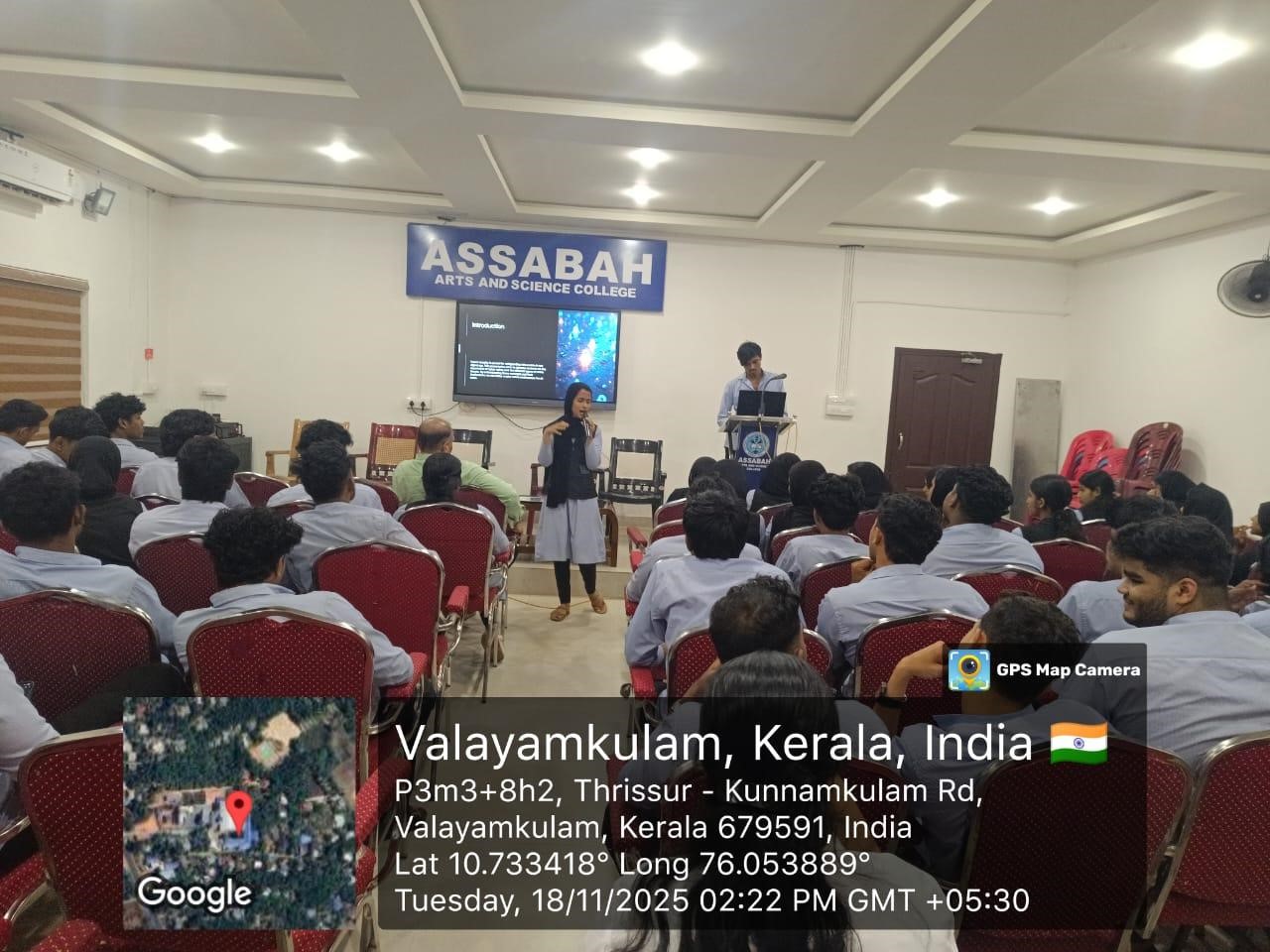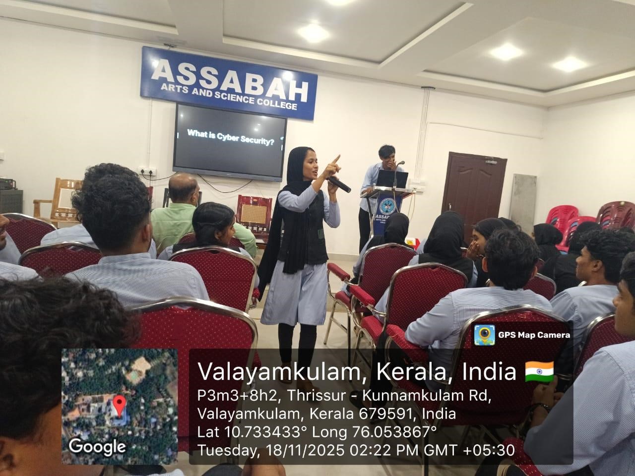 The seminar has been conducted by Department of computer application in association with cyber club ,Department of management &IIC to all second year students BCOM,BBA students. The programme is inaugurated by prof.Mohamed koya M.N principal of Assabah Arts and Science College Valayamkulam. The section is handled by MOHAMMED THABSHEER and AYSHA MINHA Final year bca students on the topic, “NAVIGATING THE ONLINE WORLD SAFELY CYBER AWARENESS and Cyber club inauguration and logo release on 18/11/2025 in conference hall at 2.30P.m-3.30 pm