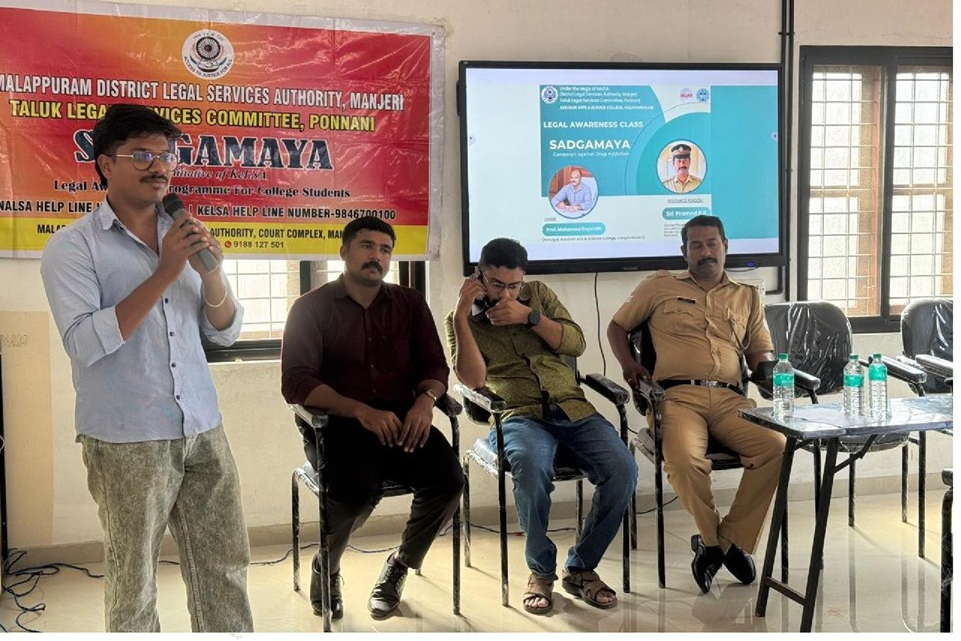 The NSS Unit 240 of Assabah Arts and Science College, Valayamkulam, in collaboration with the National Legal Services Authority (NALSA), District Legal Services Authority (DLSA), Manjeri, and Taluk Legal Services Committee, Ponnani, successfully organized ‘SADGAMAYA’, a Legal Awareness Class and Campaign Against Drug Addiction. The initiative aimed to educate students and the community on the legal consequences of drug abuse and promote awareness about the dangers of substance addiction.