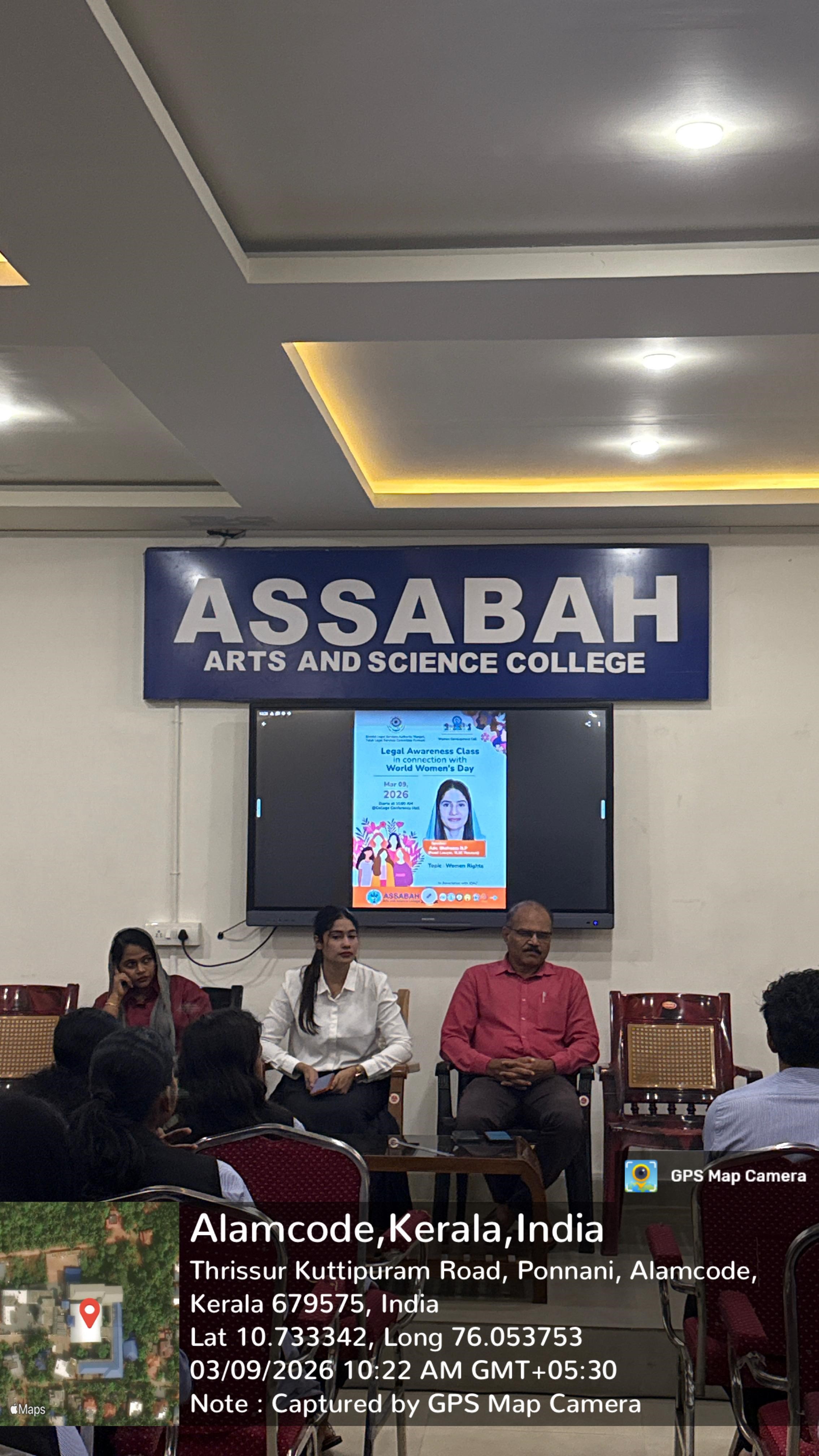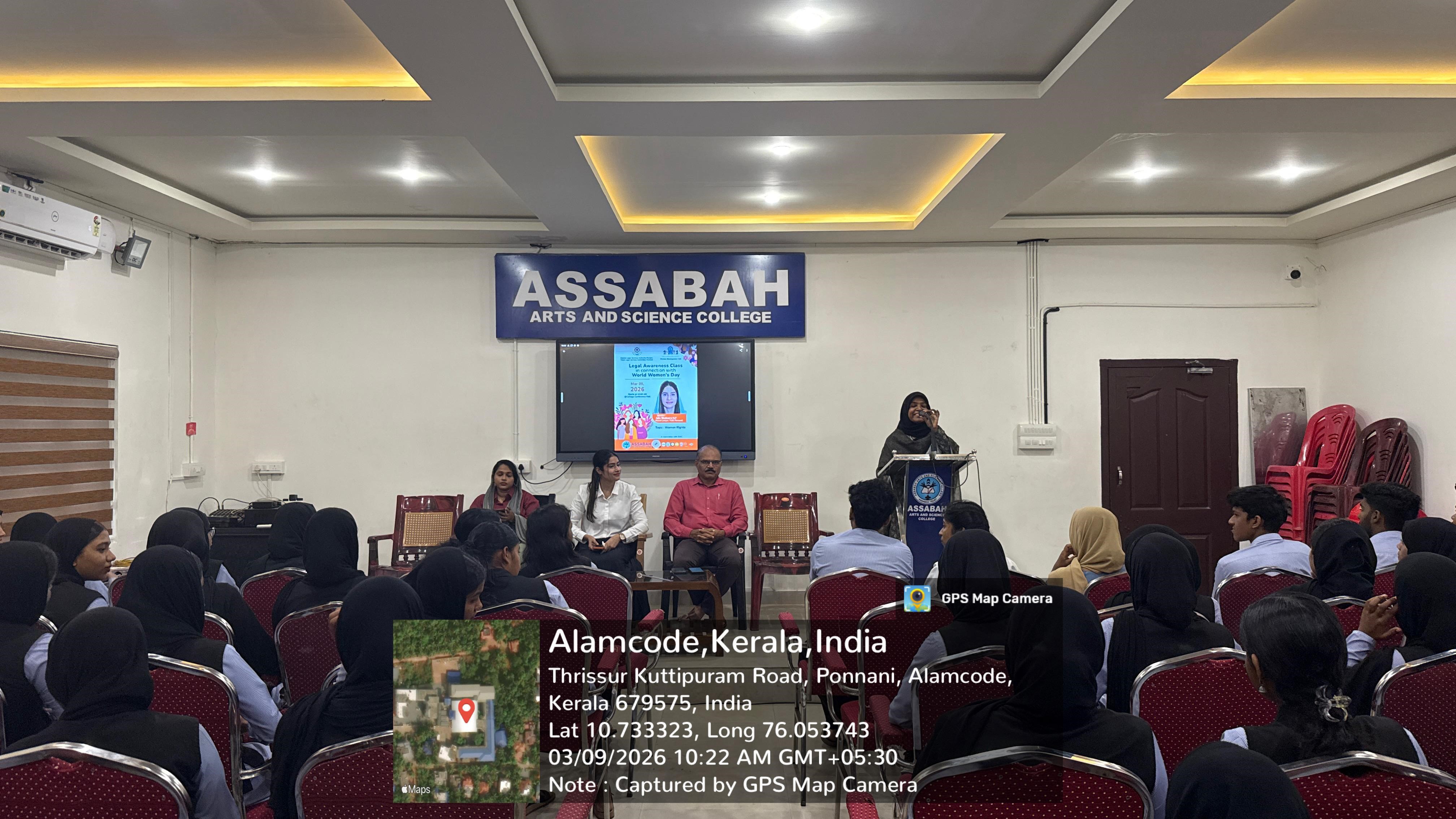 Awareness Class on Women’s Legal Rights Held at Assabah College in connection with International Women’s Day, the Women Development Cell (WDC) of Assabah Arts and Science College organized a legal awareness class for female students. The aim of the programme was to create awareness about women’s rights and the legal protections available for them.