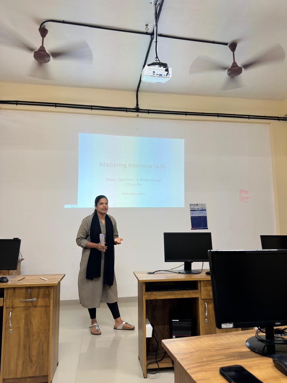 The workshop commenced at 10:30 AM with a warm welcome speech by Ayisha Adhila (2nd Year BBA). The session was formally inaugurated by the respected Principal, Prof. Mohamed Koya M.N, who spoke on the transformative power of communication in shaping leadership and professionalism.
